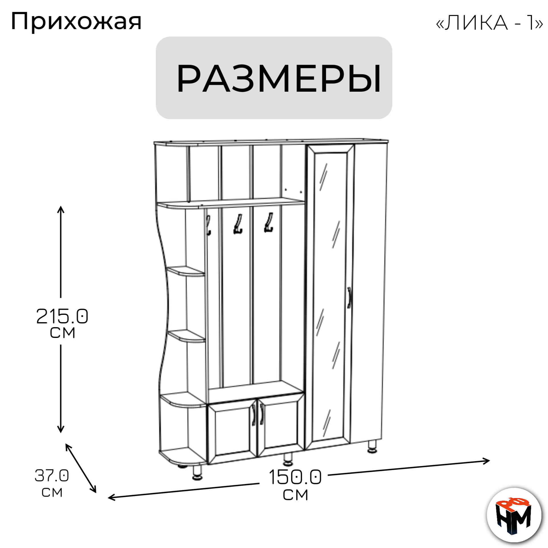 | Состав комплекта | Прихожая Лика № 1 1,5 м (Дуб юкон / графит) / фурнитура / схема сборки. |