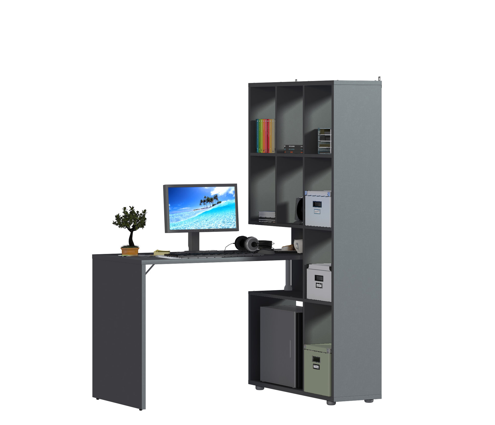 10 цен на Компьютерный, письменный стол столплит Техно СБ-2303.Н со стеллажом, с полками, угловой, ЛДСП, Диамант серый, 198х164х60 см