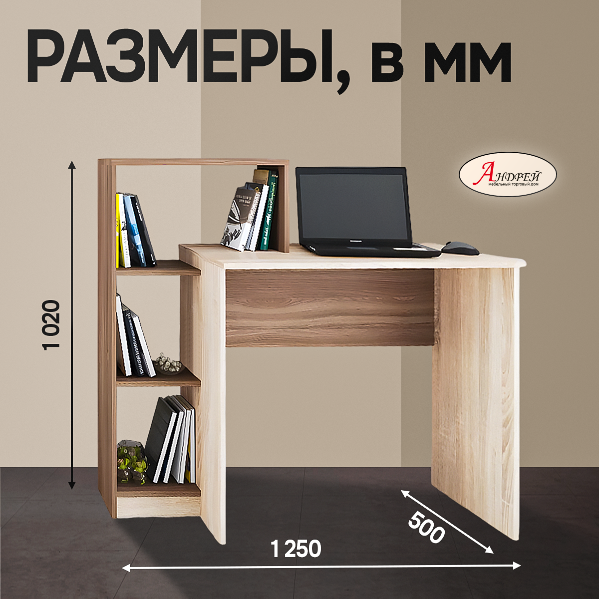 Стол компьютерный размер (1020х1250х500) белый/дуб крафт золотой 3 813 ₽