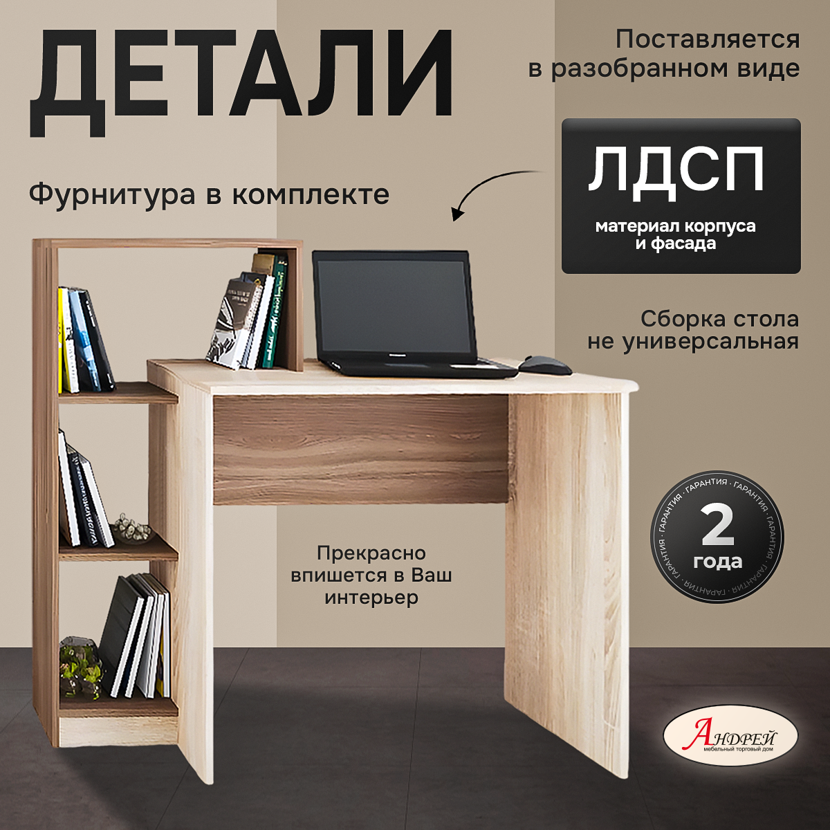 Стол компьютерный угловой, ЛДСП, Дуб сонома/белый, Квартет-12 7 342 ₽