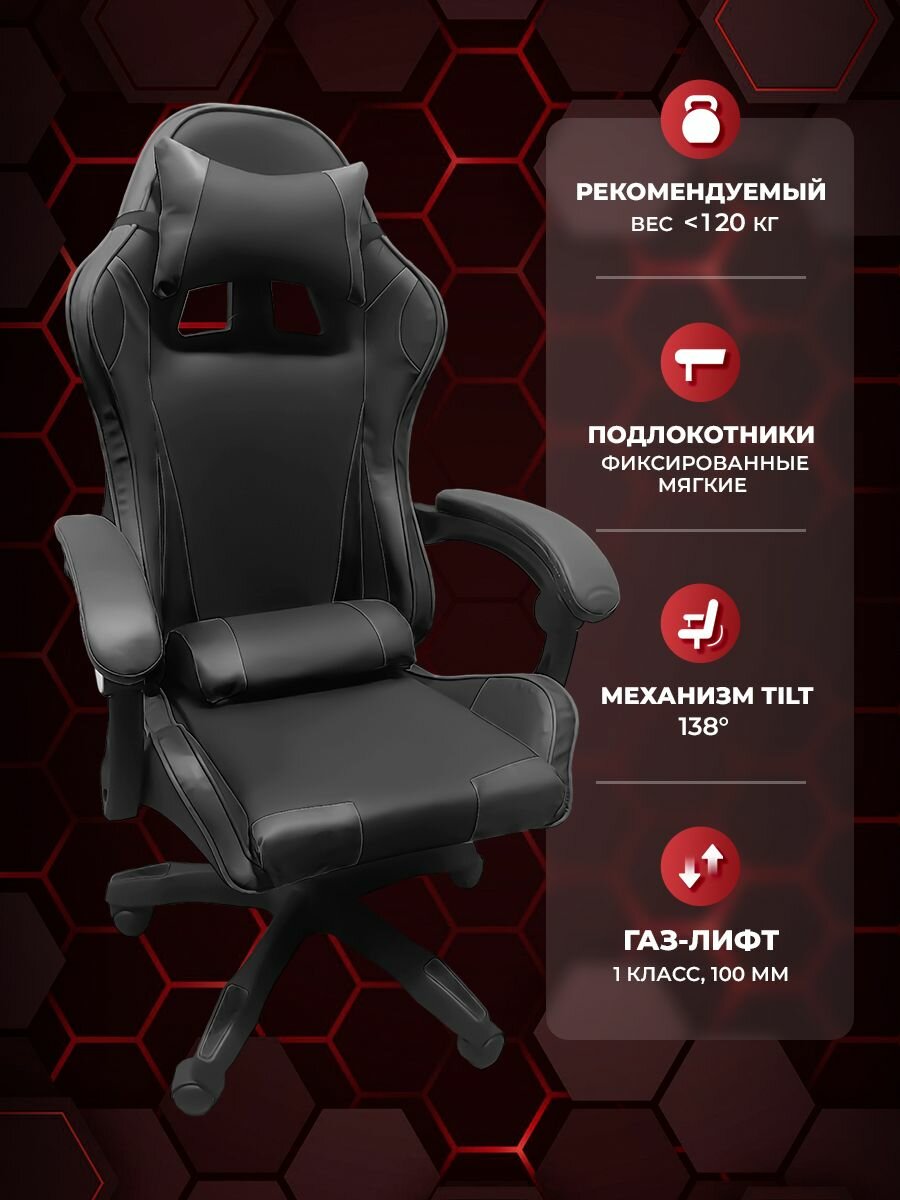Кресло компьютерное игровое геймерское Classmark FT-7009 офисное, с подушками для спины и шеи, на колесиках, черное, экокожа, газлифт информация: