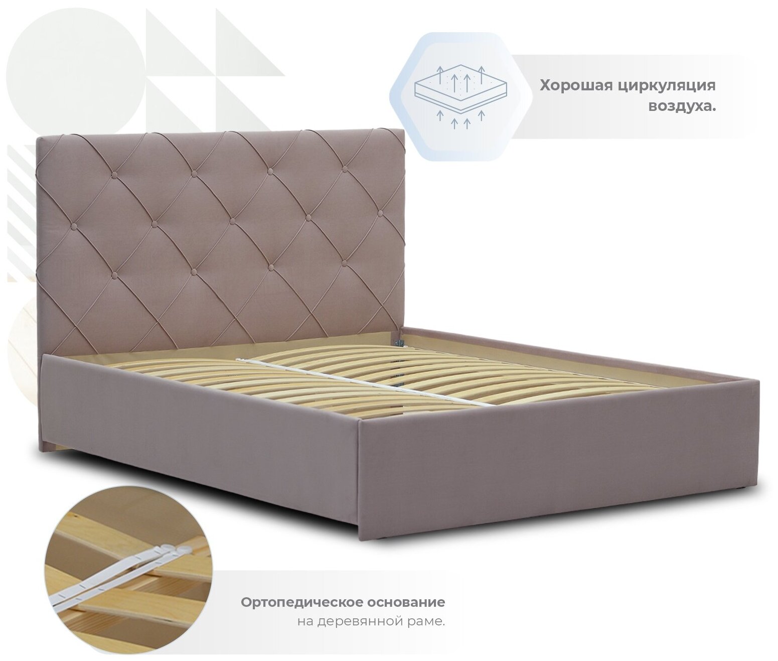 Двуспальная кровать Артэ 160х200, с мягким изголовьем для дома и спальни, Ладья, ортопедическое основание, Velutto 37 информация: