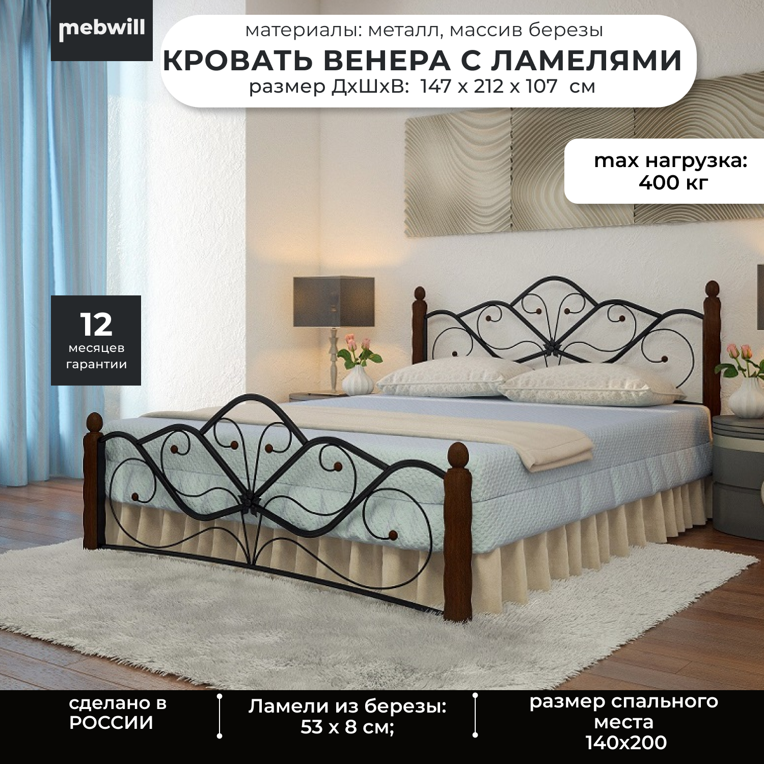 Кровать двуспальная с ламелями Форвард Венера 1, 140*200 Металл Черный/Шоколад информация:
