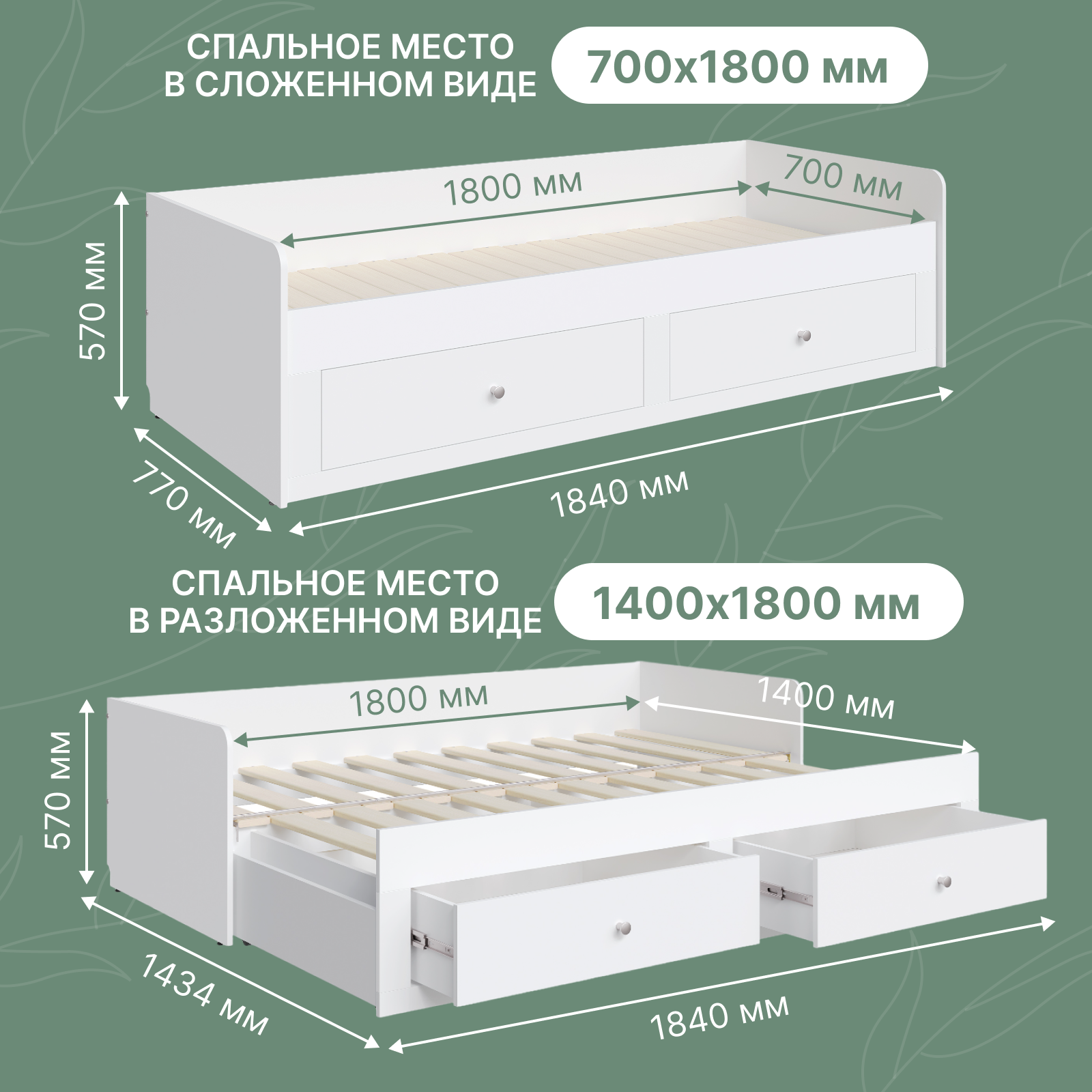 Кровать раздвижная Oliva белая 70Х180/140Х180, с матрасом информация: