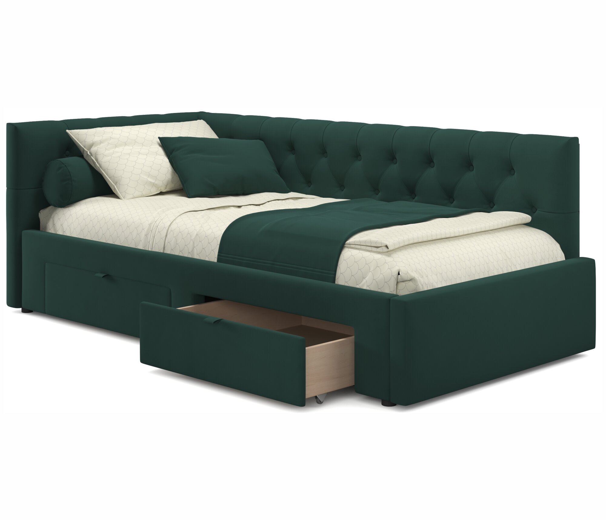 Односпальная кровать-тахта угловая Afelia 900 изумруд Zeppelin ортопед 90х200, из велюра с ящиками информация: