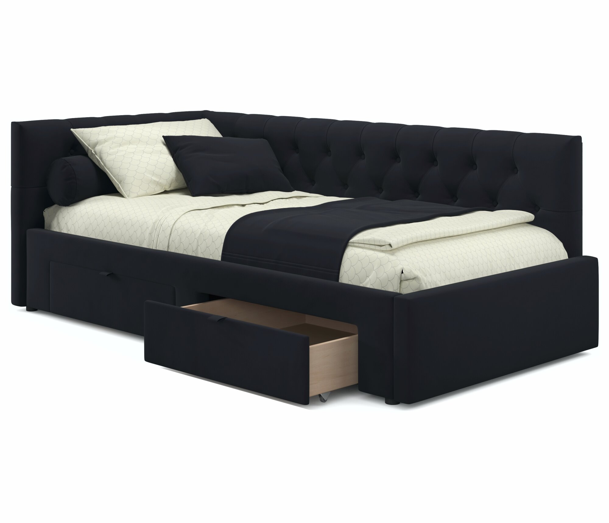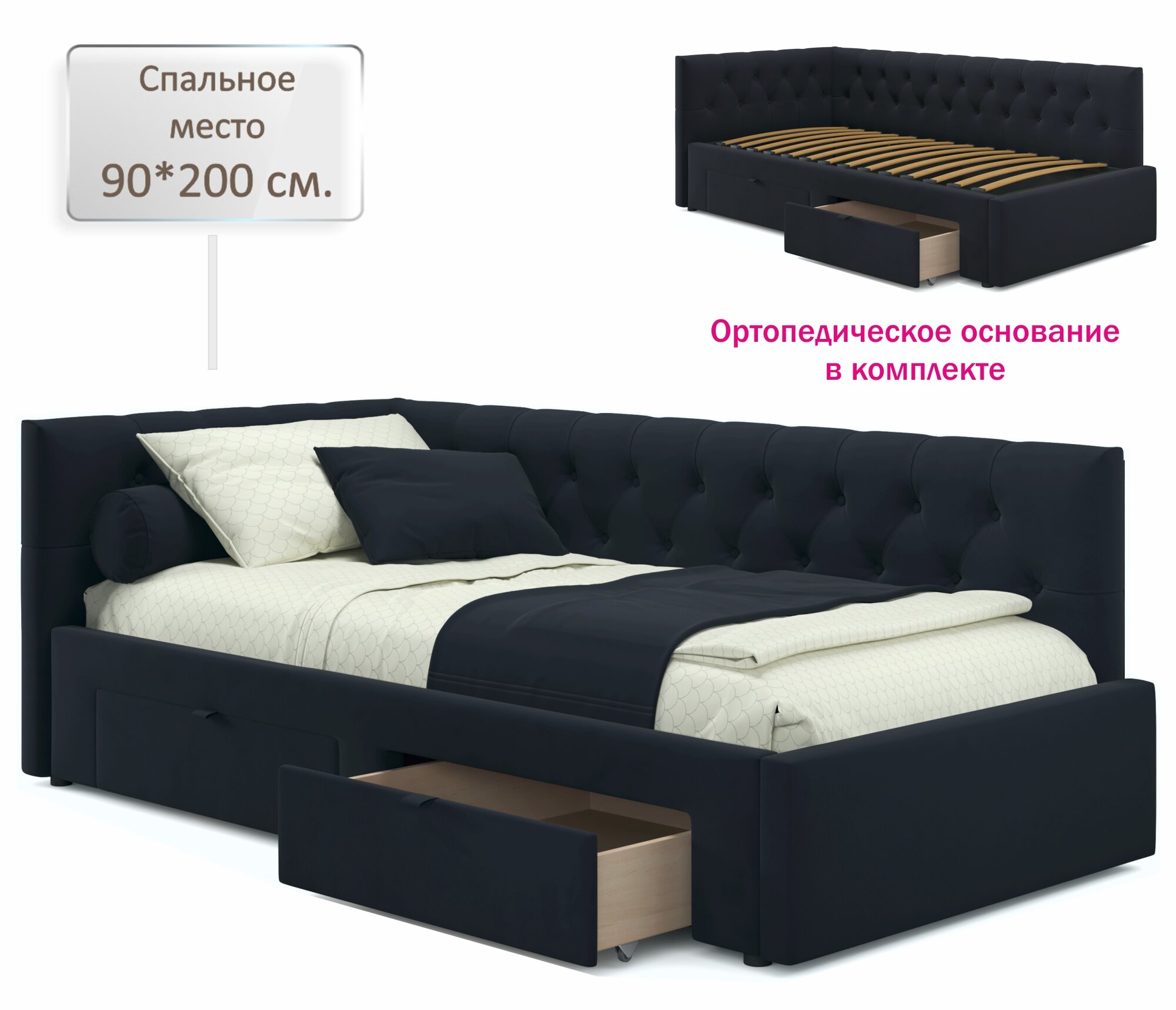 Односпальная кровать-тахта угловая Afelia 900 темная Zeppelin с ортопедическим основанием , 90х200, мягкая из велюра, с ящиками 30 000 ₽