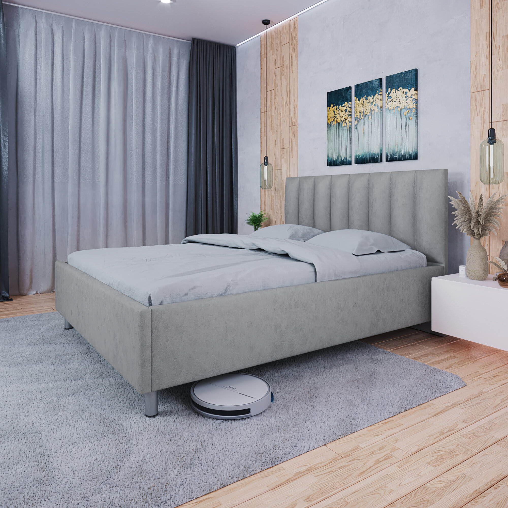 Мягкая двуспальная кровать 140x200 на ножках 12 см. с ортопедическим основанием, подъемным механизмом и бельевым ящиком 26 400 ₽
