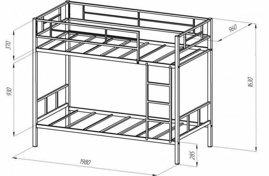 | Комплектация | металлические боковые стойки -2шт , верхнее ложе -1шт., нижнее ложе -1шт., лестница - 1шт.,комплект п=крепежей - 1шт. |