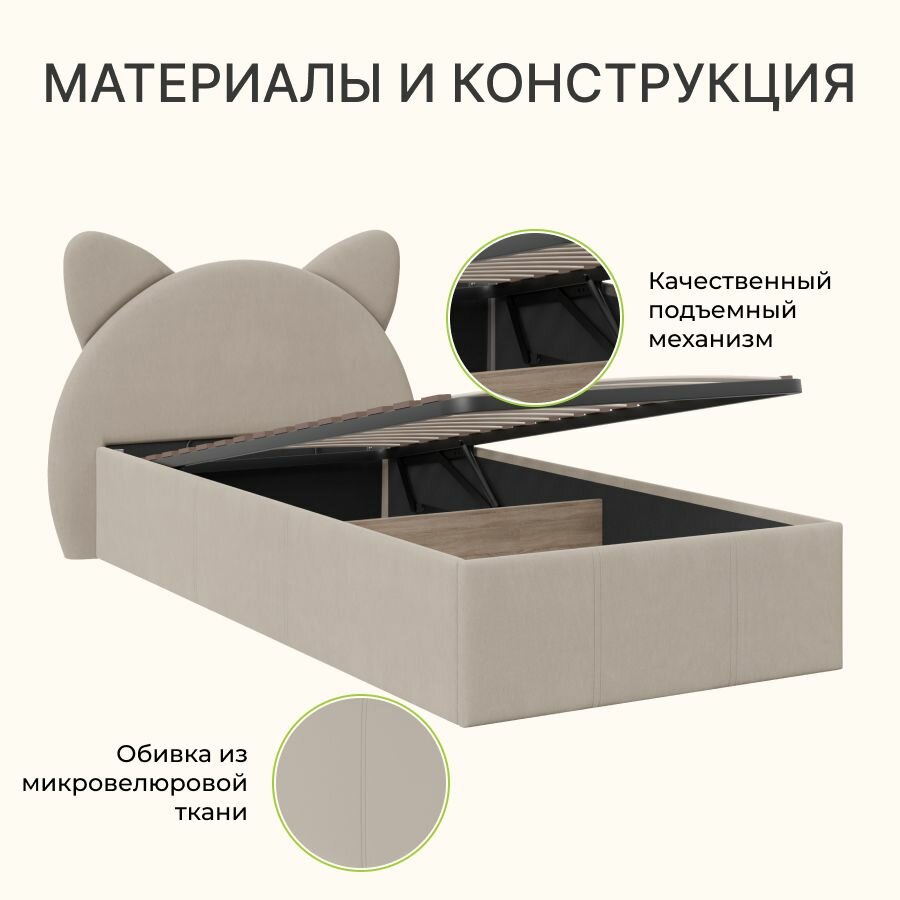 Кровать Китти, бежевый, 120х200 см, с подъёмным механизмом, кровать детская информация:
