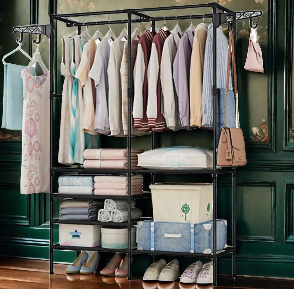 Отзывы на "Гардеробная система Beautiful House" 6 полок, 175х108х36 см, металл/пластик, черная Гардероб Шкаф для одежды и обуви