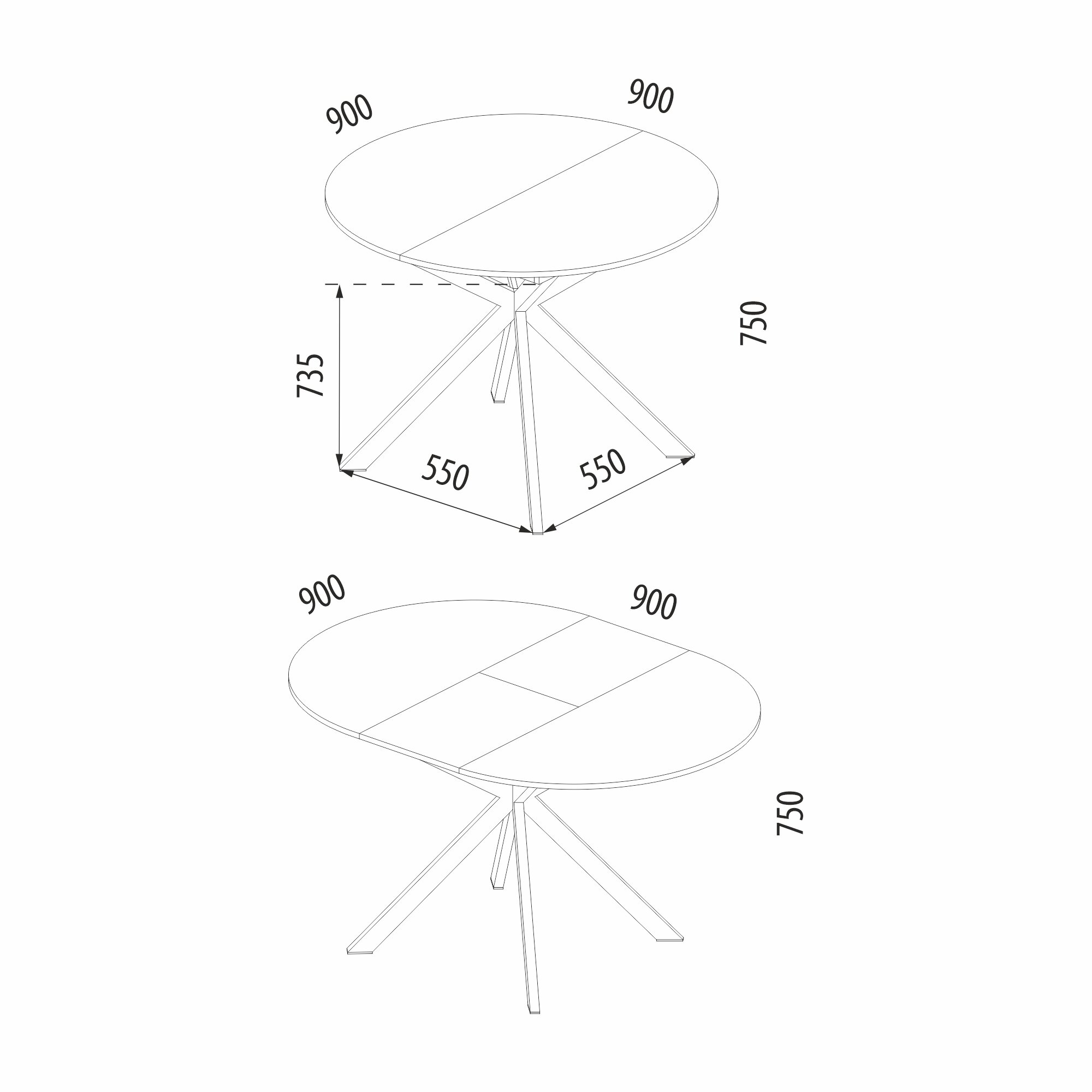 Стол обеденный круглый раздвижной Парма 25 (01) Дуб Вотан/Черный, 90х90х75 см информация: