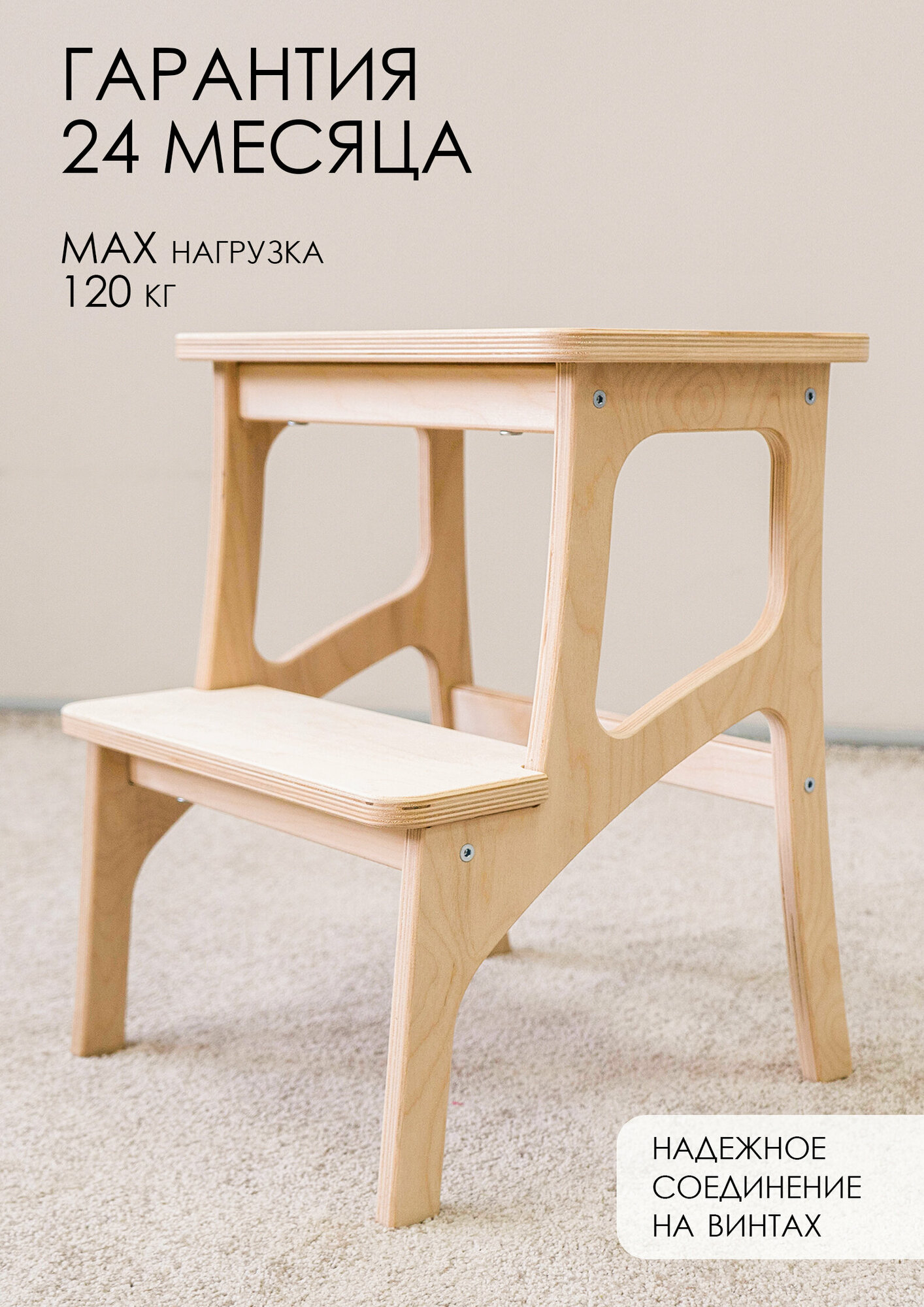 Табурет-Стремянка Glider, экологичный, 18мм, берёзовая фанера, табурет неокрашеный, 42х38.5х50см информация: