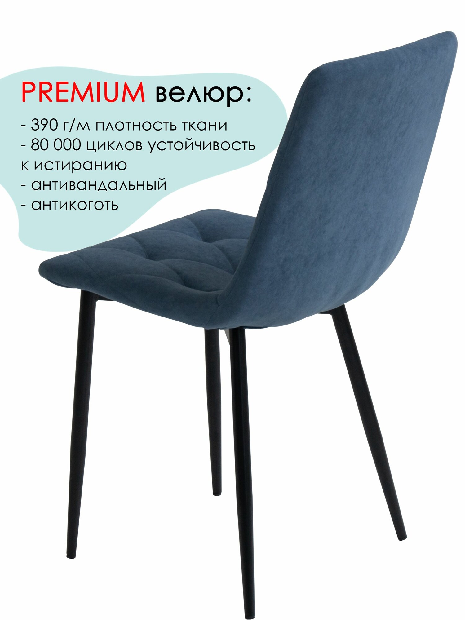 Стул мягкий для кухни, комплект из 4 кухонных стульев чили, велюр, синие, черные ножки 17 300 ₽