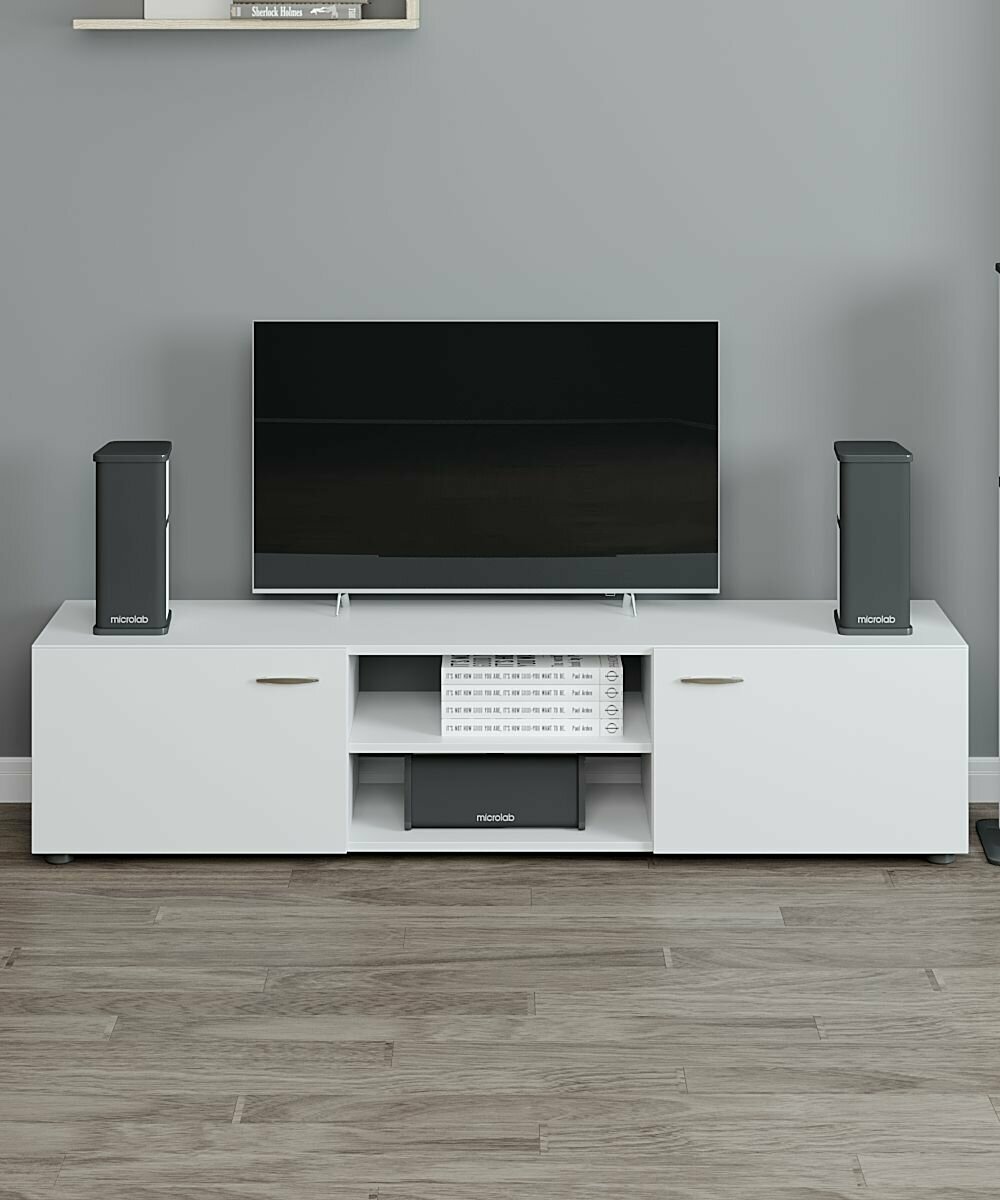 10 цен на Тумба для телевизора белая напольная лофт для гостиной и спальни, 158x35x35 см, Феликс