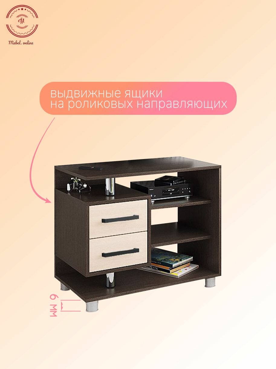 10 цен на Тумба ТВ 011(2я) компактная с ящиками и полками на ножках венге/дуб молочный с тиснением 665х800х430 (ВхШхГ)