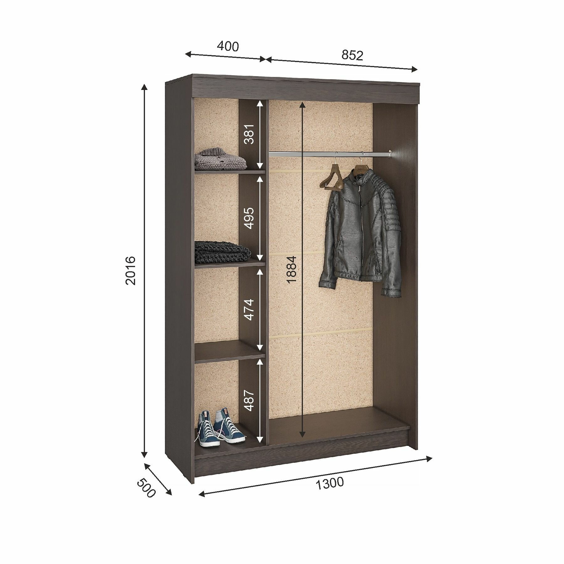 | Дверцы | раздвижные / распашные |