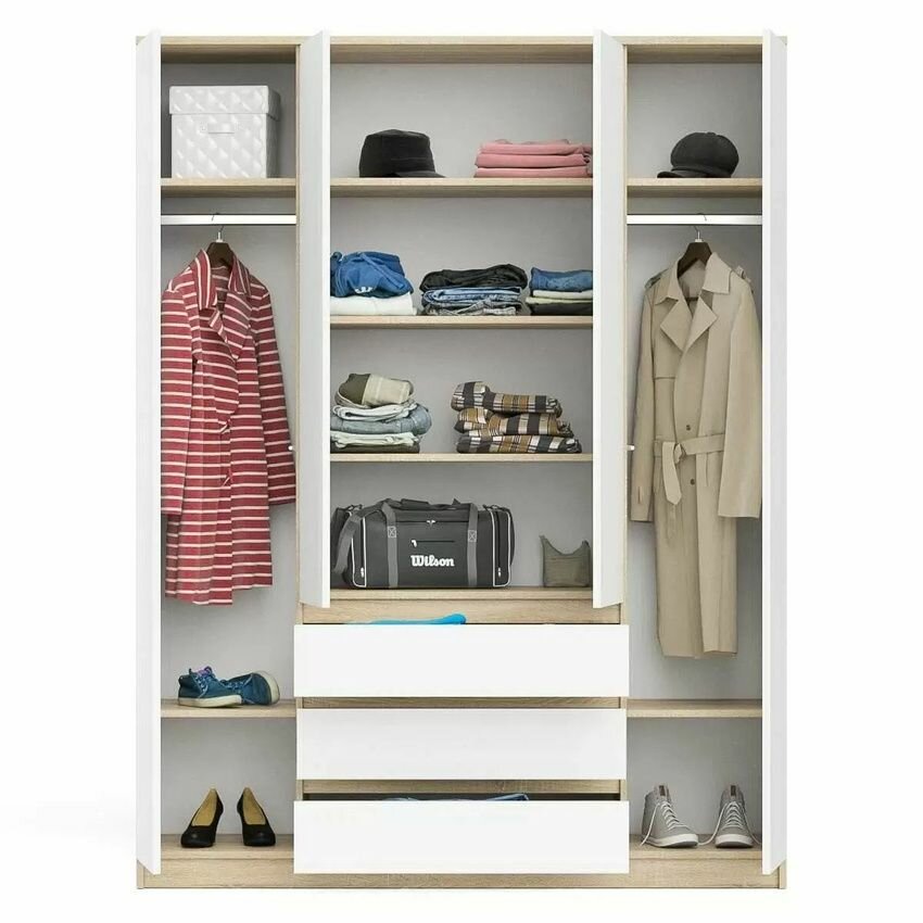 10 цен на Шкаф 4-х створчатый распашной с ящиками и антресолью "Челси" 1,6 Дуб Сонома/Белый глянец