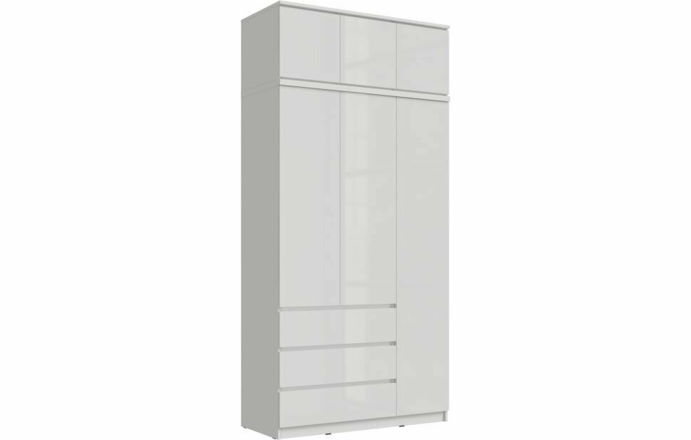 10 цен на Шкаф распашной Челси 1200 с ящиками и антресолью Белый/Белый глянец