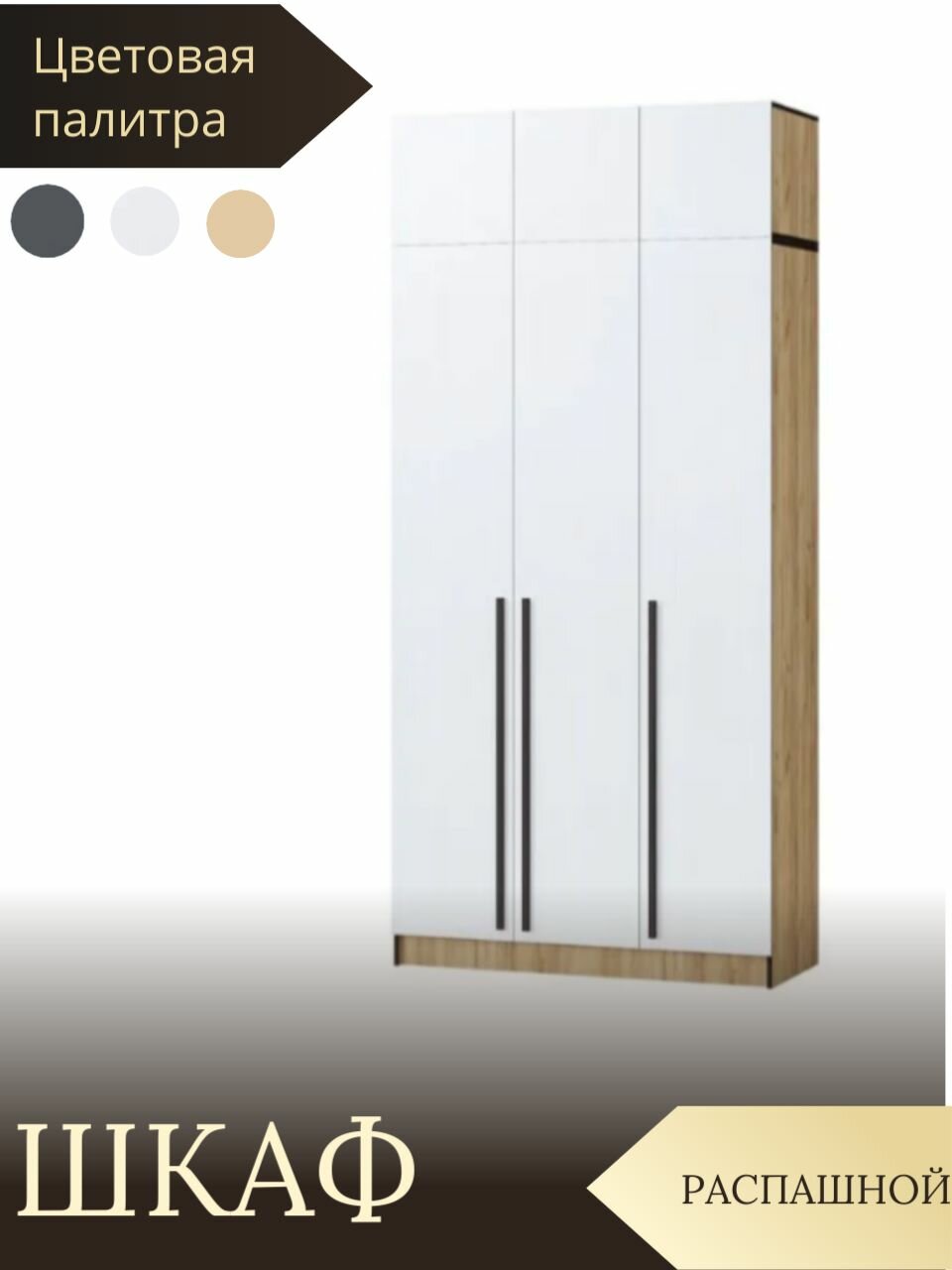 Шкаф распашной с антресолью "Бастион" 1.2м - Белый древесный/Дуб крафт золотой информация: