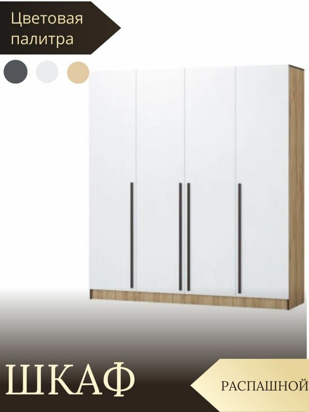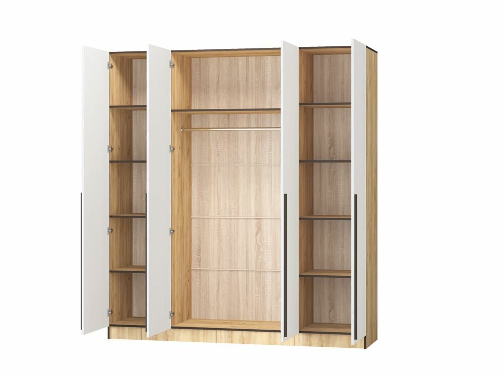 Шкаф распашной 4-х створчатый "Бастион" 2.0м Белый древесный/Дуб крафт золотой информация: