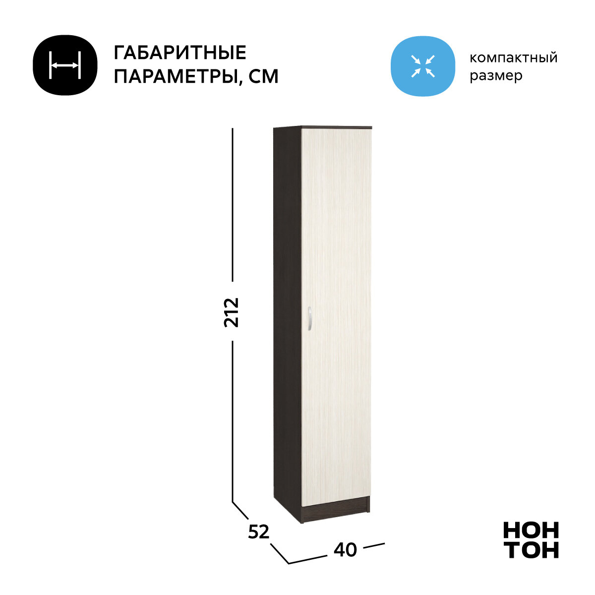 Шкаф-пенал для одежды Нонтон Ронда, венге / дуб белфорд 40 см