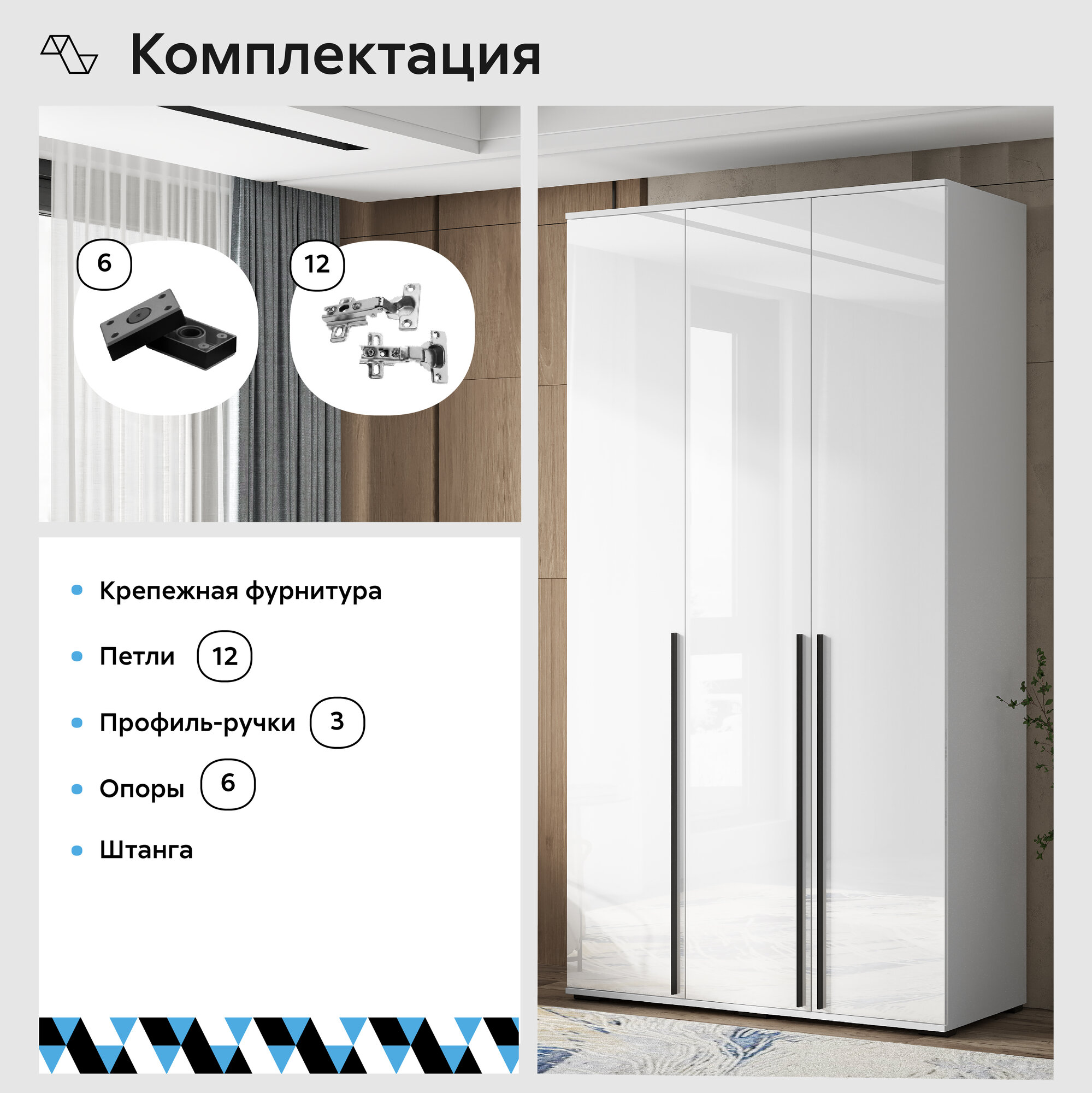 Шкаф для одежды распашной Нонтон Луас, 120 см, 7 полок и штанга, белый глянец
