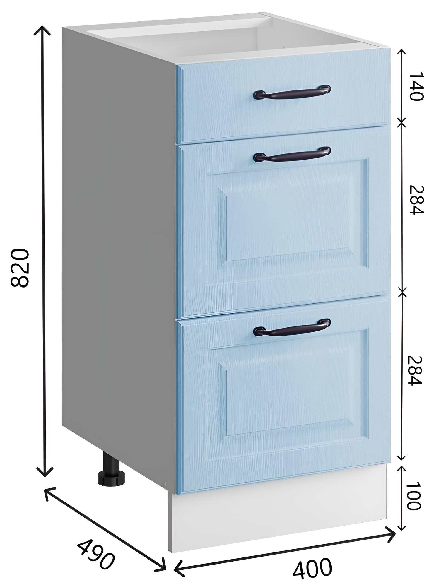 Отзывы на Шкаф кухонный напольный 40 см, 3 ящика, МДФ Лазурное дерево, Ш40*Г50*В82