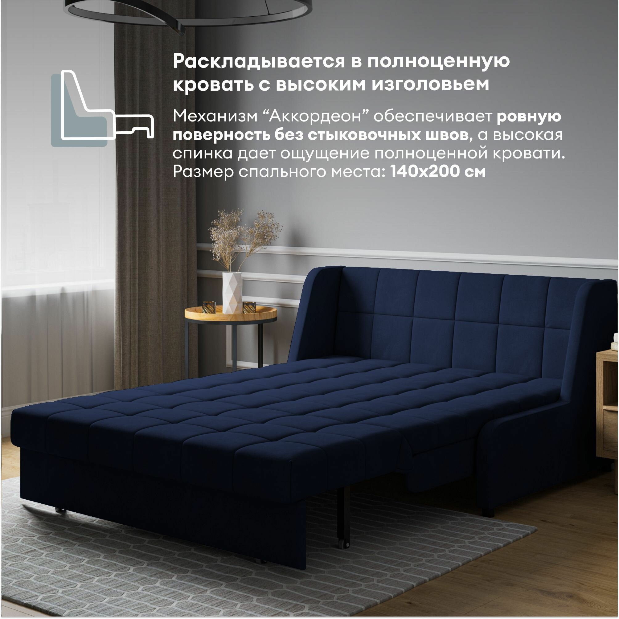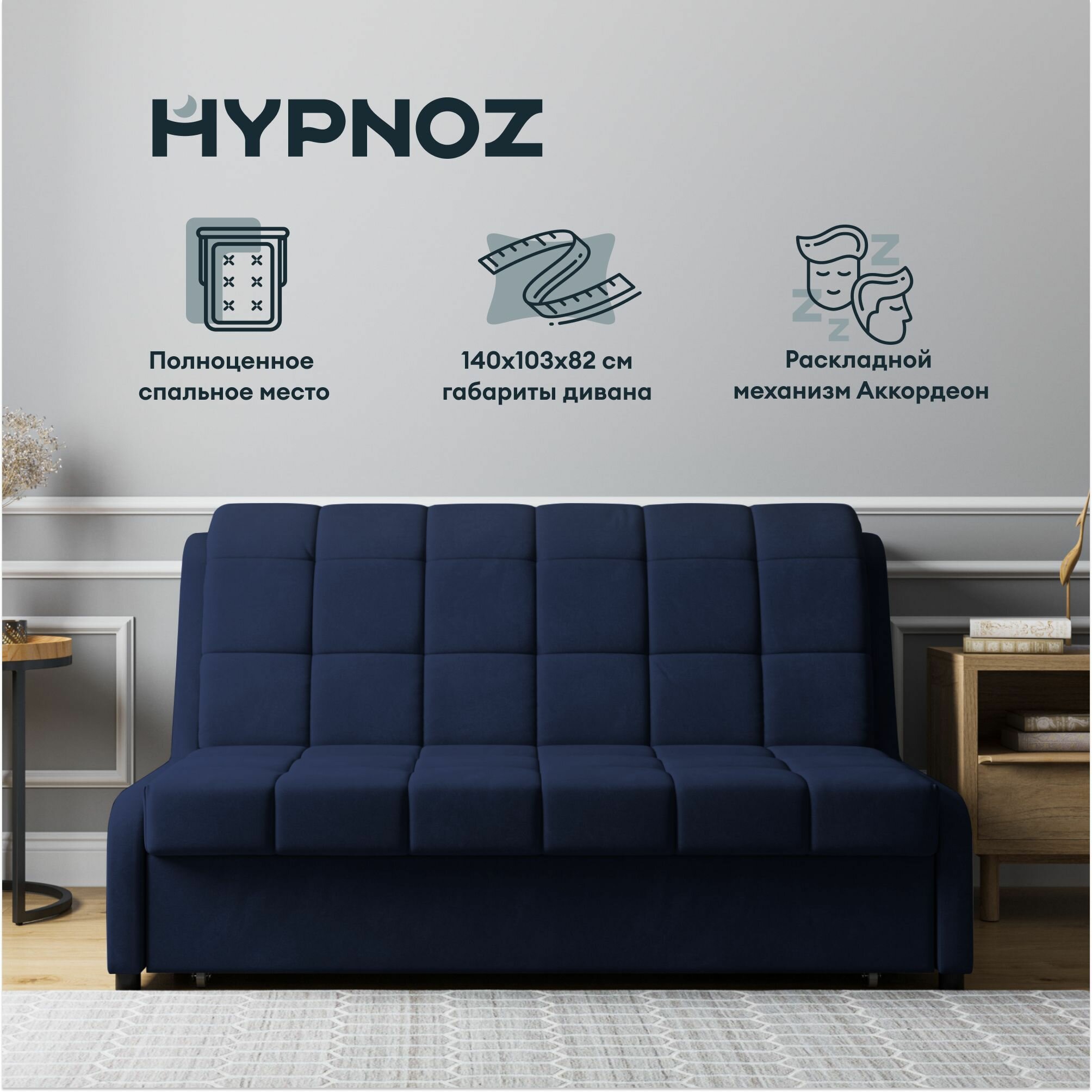 Диван HYPNOZ Frontera 140, механизм аккордеон, Синий информация: