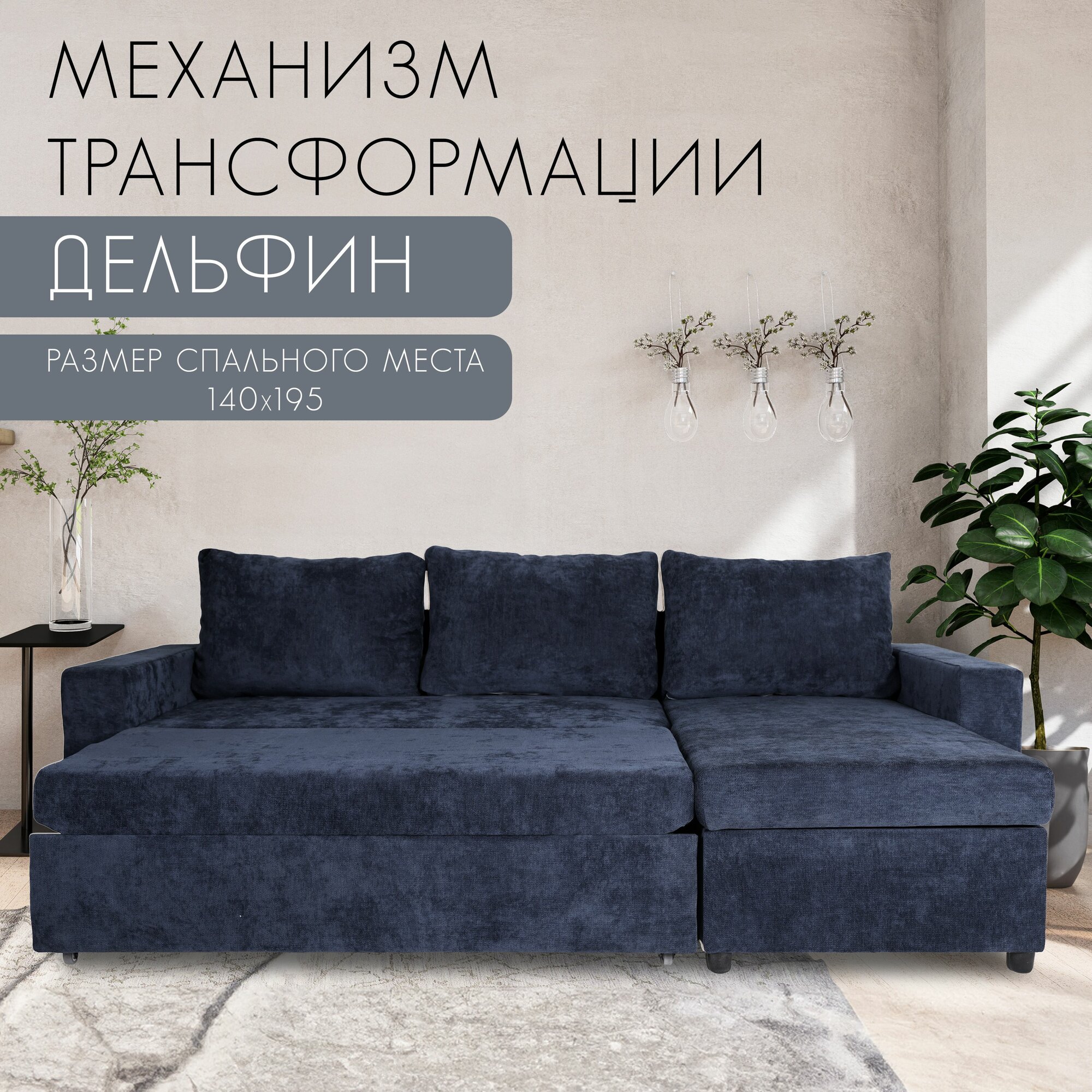 Отзывы на Угловой диван-кровать "Милли", раскладной, механизм Дельфин, с ящиком для белья. Шенилл. Цвет темно-синий.