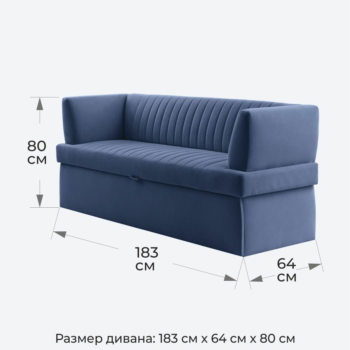 Кухонный раскладной диван Прага 183х64х83 см. Мелисса 20, прямой раскладной диван со спальным местом, Синий, Велюр информация: