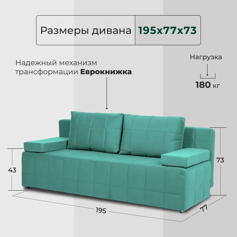 Диван-кровать Диван 24 Вентура мятный, велюр, механизм Еврокнижка информация: