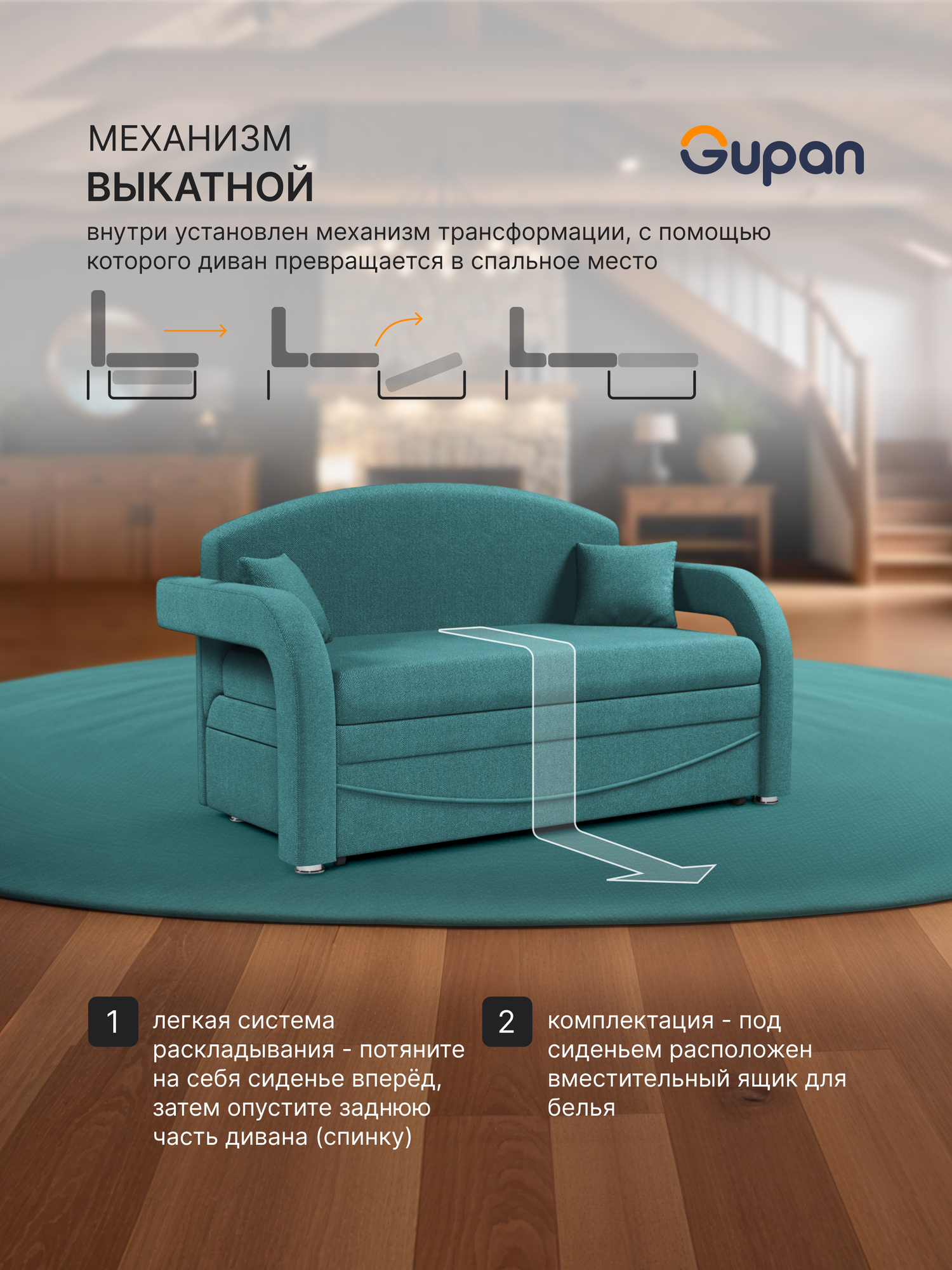 Диван кровать Gupan Алекс Велюр Amigo Lagoon, раскладной, механизм выкатной, беспружинный, с ящиком для белья информация: