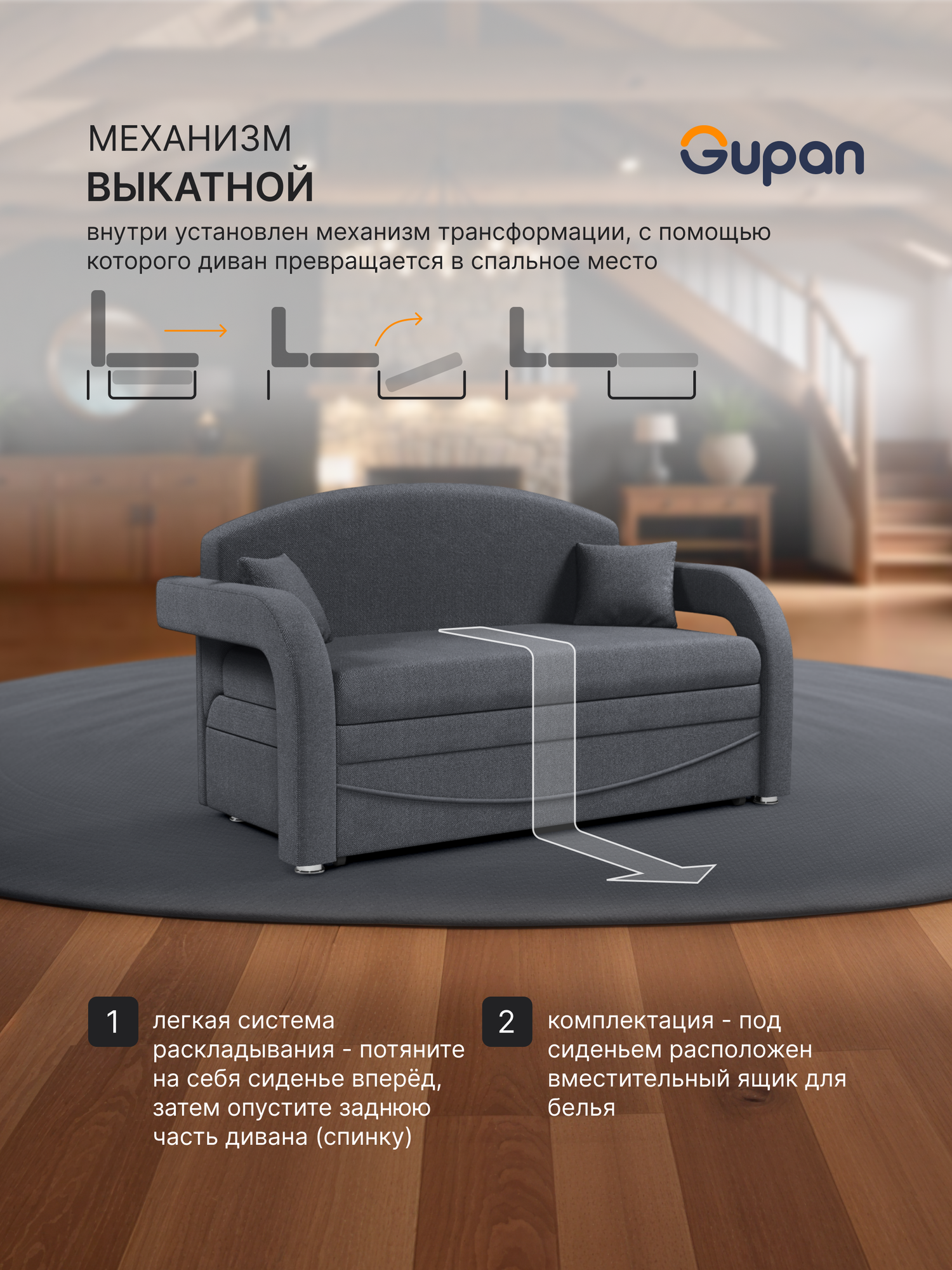 Диван кровать Gupan Алекс Рогожка Savana Mouse, раскладной, механизм выкатной, беспружинный, с ящиком для белья 25 684 ₽