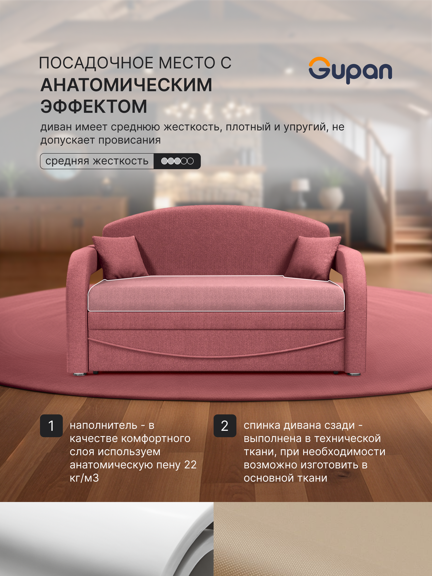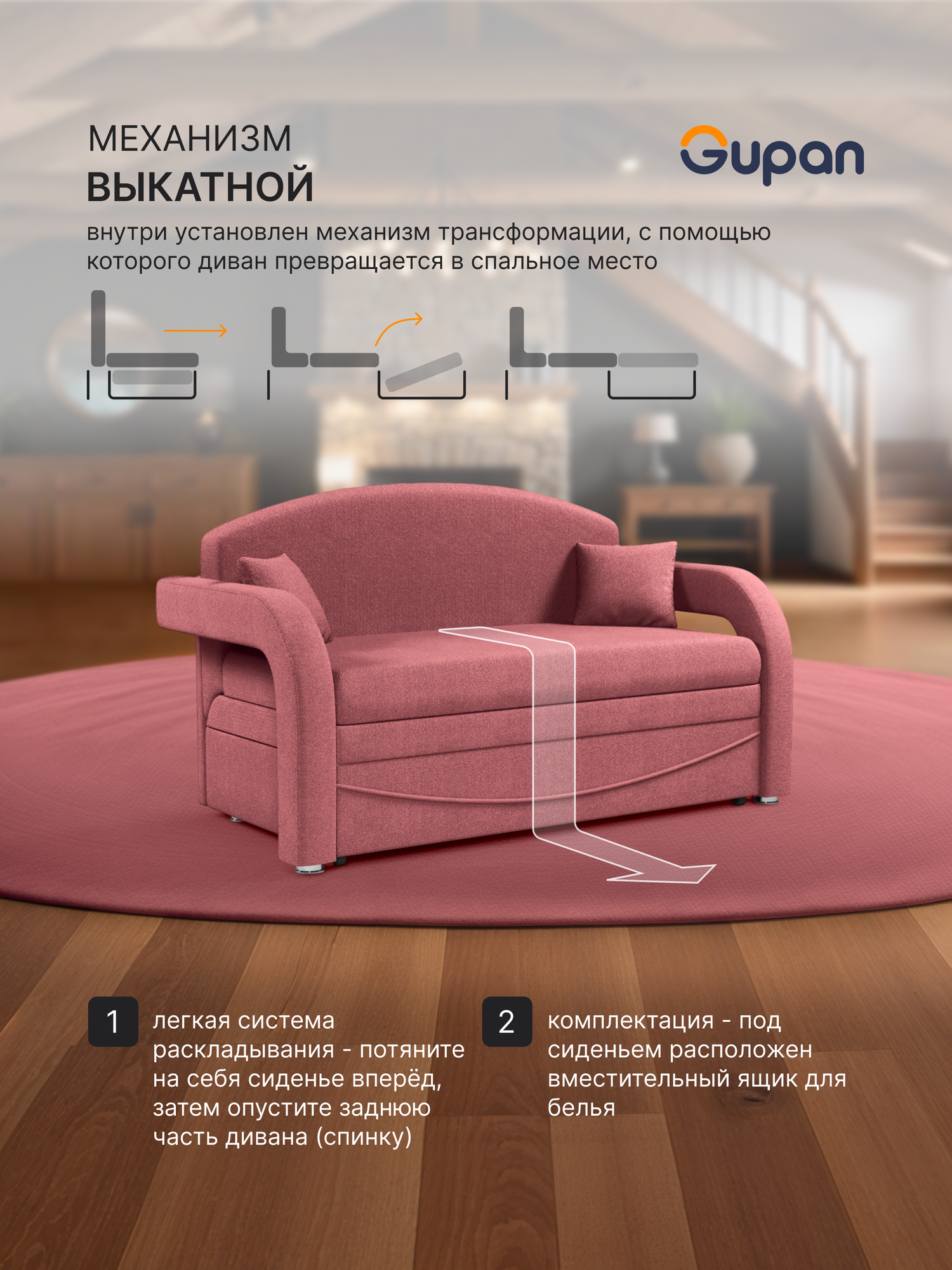 Диван кровать Gupan Алекс Рогожка Savana Coral, раскладной, механизм выкатной, беспружинный, с ящиком для белья 25 684 ₽