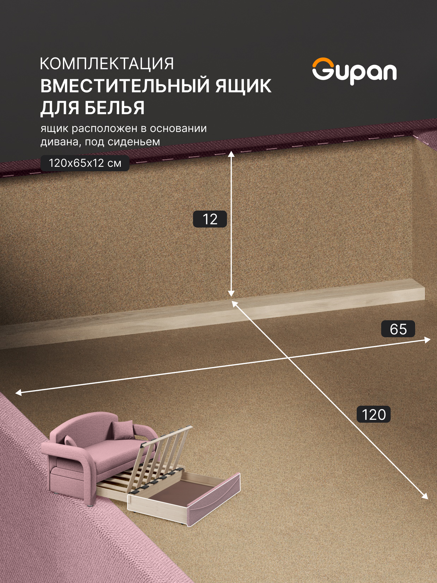 Диван кровать Gupan Алекс Рогожка Savana Dimrose, раскладной, механизм выкатной, беспружинный, с ящиком для белья информация: