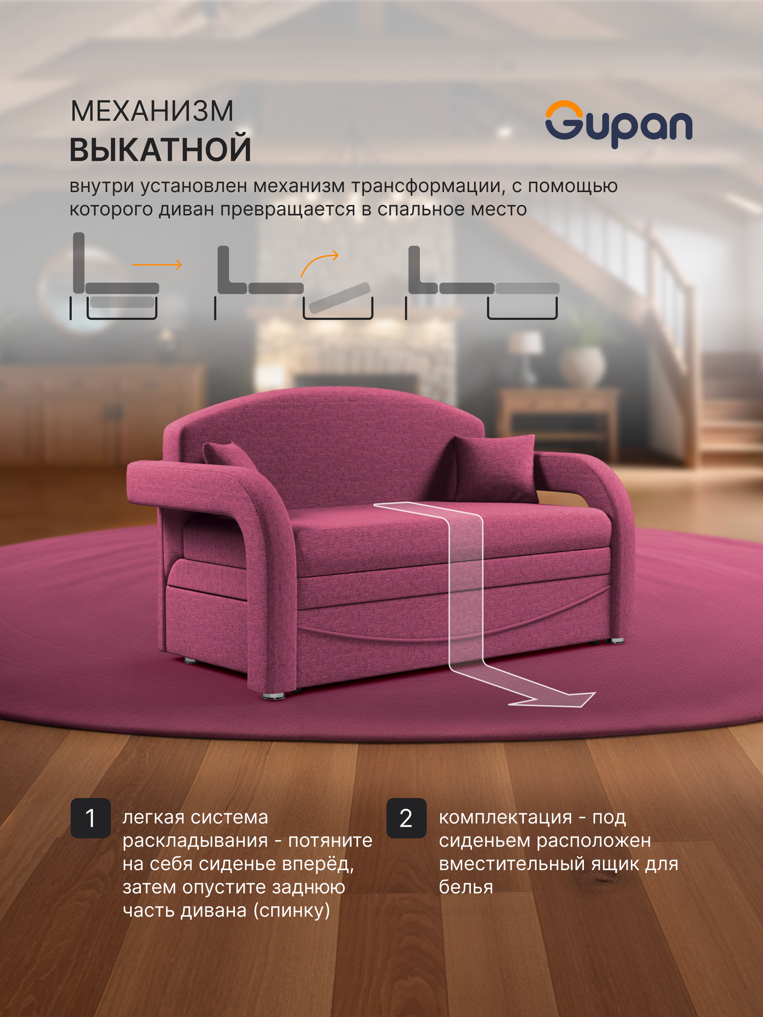 Отзывы на Диван кровать Gupan Алекс Рогожка Savana Berry, раскладной, механизм выкатной, беспружинный, с ящиком для белья