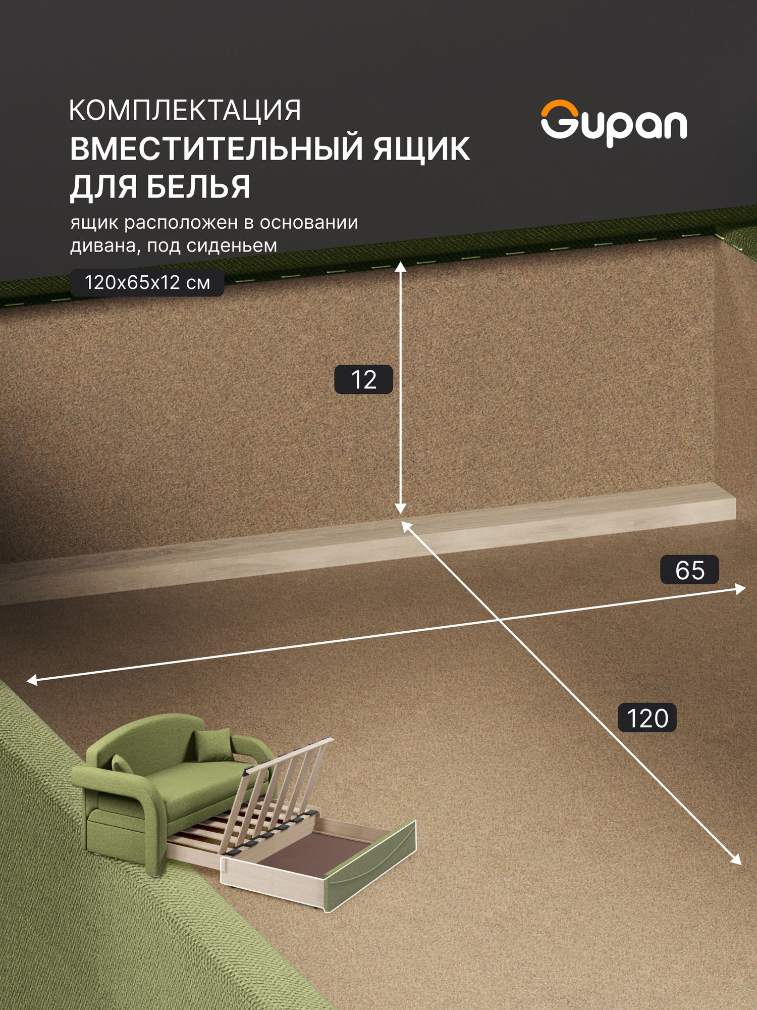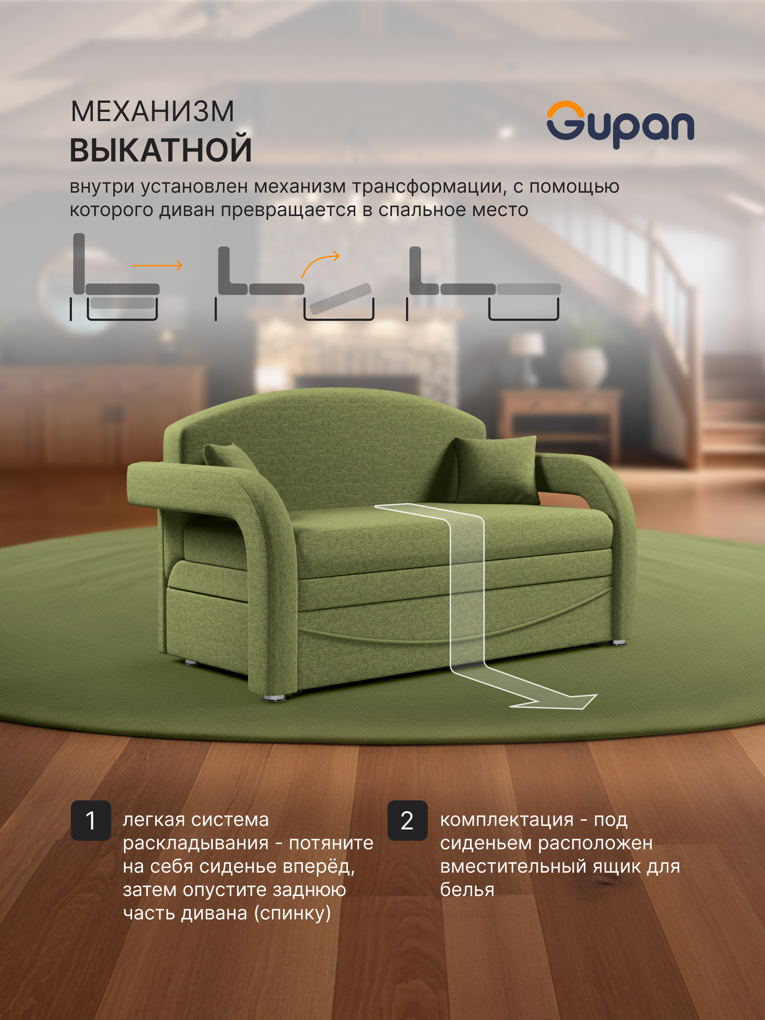 Диван кровать Gupan Алекс Рогожка Savana Green, раскладной, механизм выкатной, беспружинный, с ящиком для белья информация: