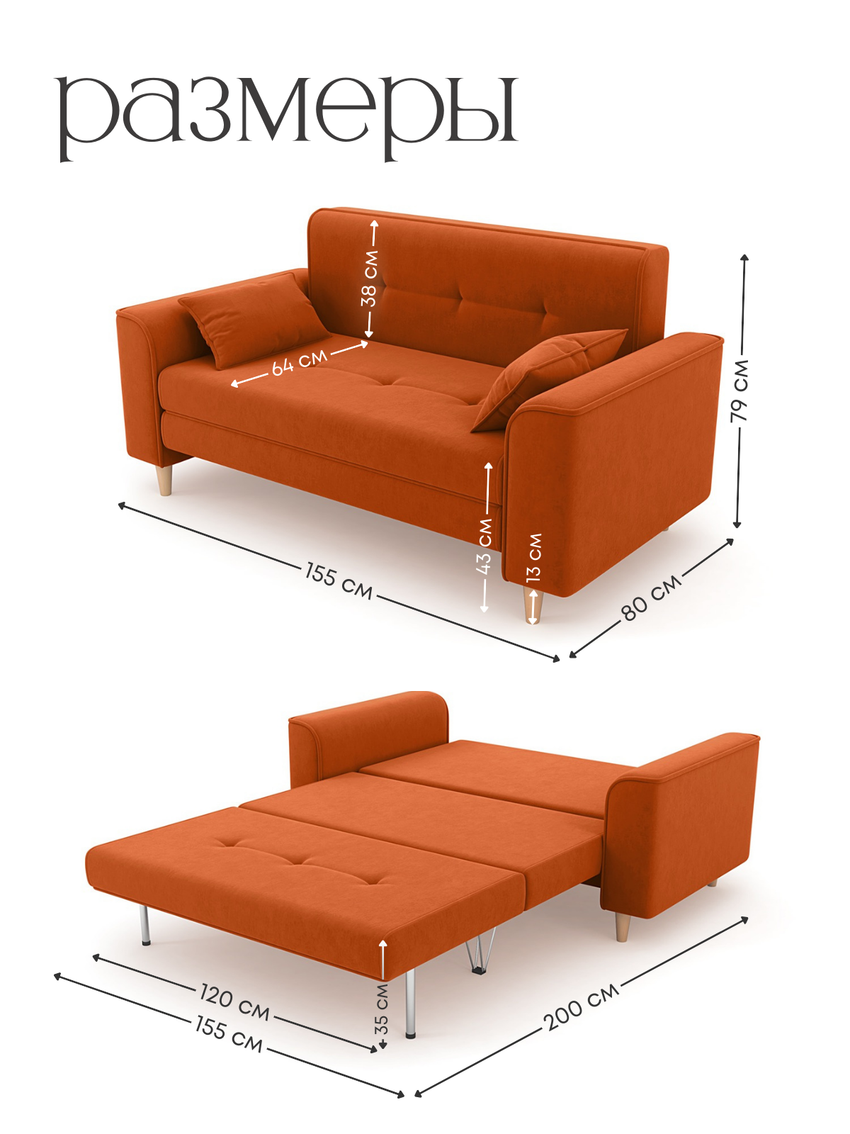 Отзывы на Диван-кровать в детскую, раскладной диван для дома, Твист, 120х200, оранжевый