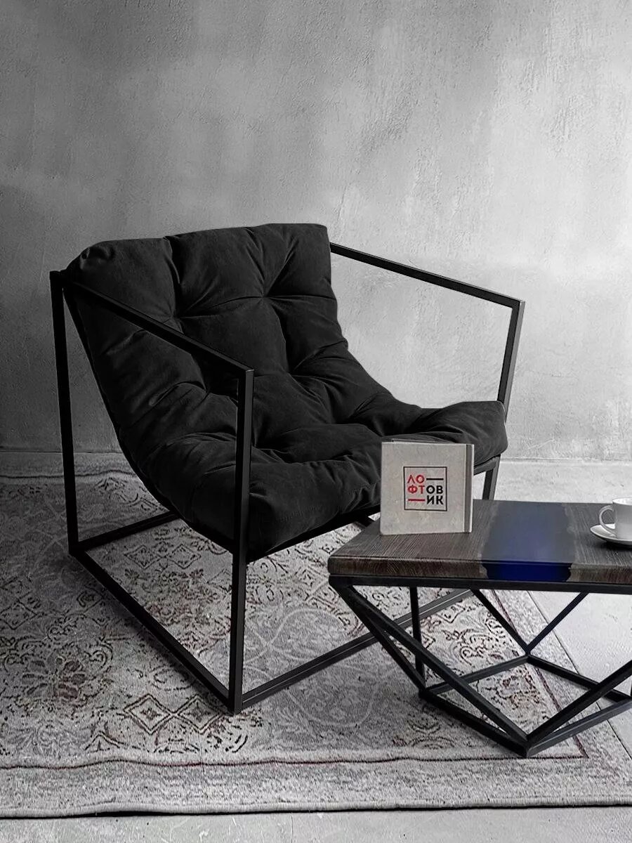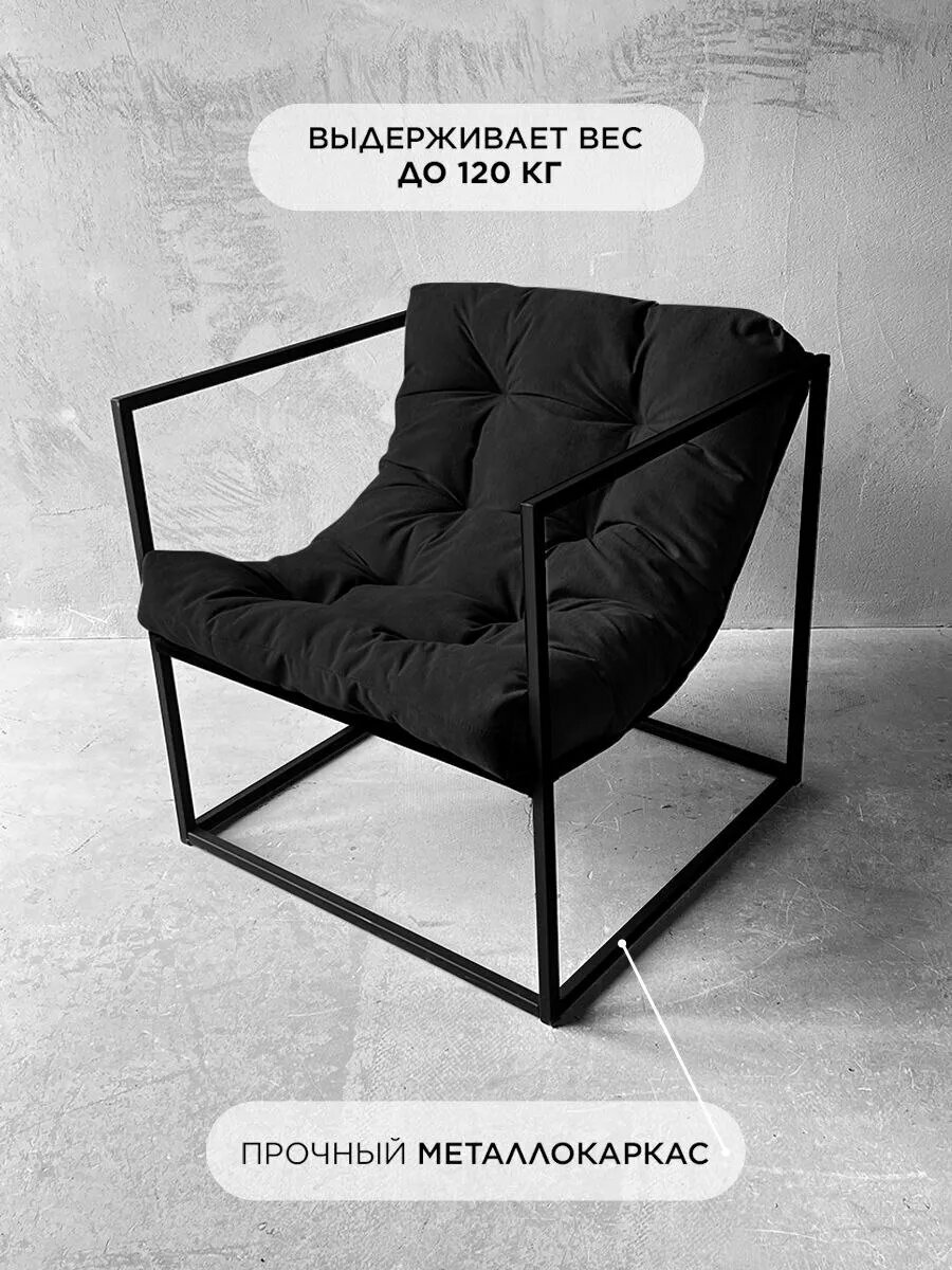 Кресло мягкое удобное для отдыха, уличное, на балкон, на веранду, в стиле лофт, минимализм, Лофтовик + черный велюр 6 800 ₽