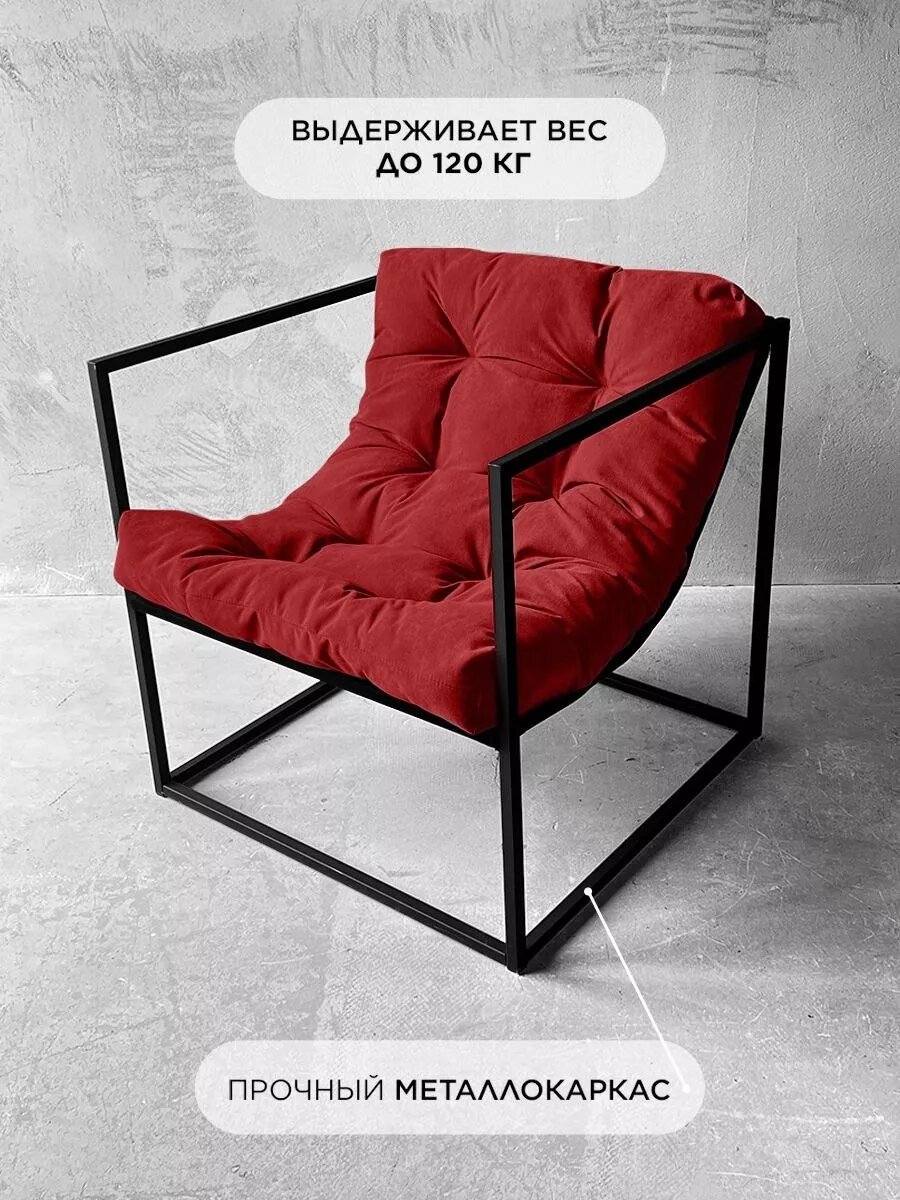 Кресло мягкое удобное для отдыха, уличное, на балкон, на веранду, в стиле лофт, минимализм, Лофтовик + Красный велюр 6 100 ₽