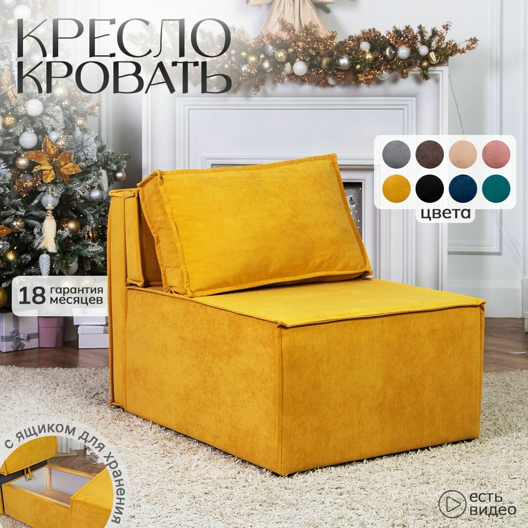 10 цен на Кресло кровать раскладное "Хит", велюр горчичный, 74x77x106. Для дома и дачи, на кухню и балкон. Для взрослых и детей.