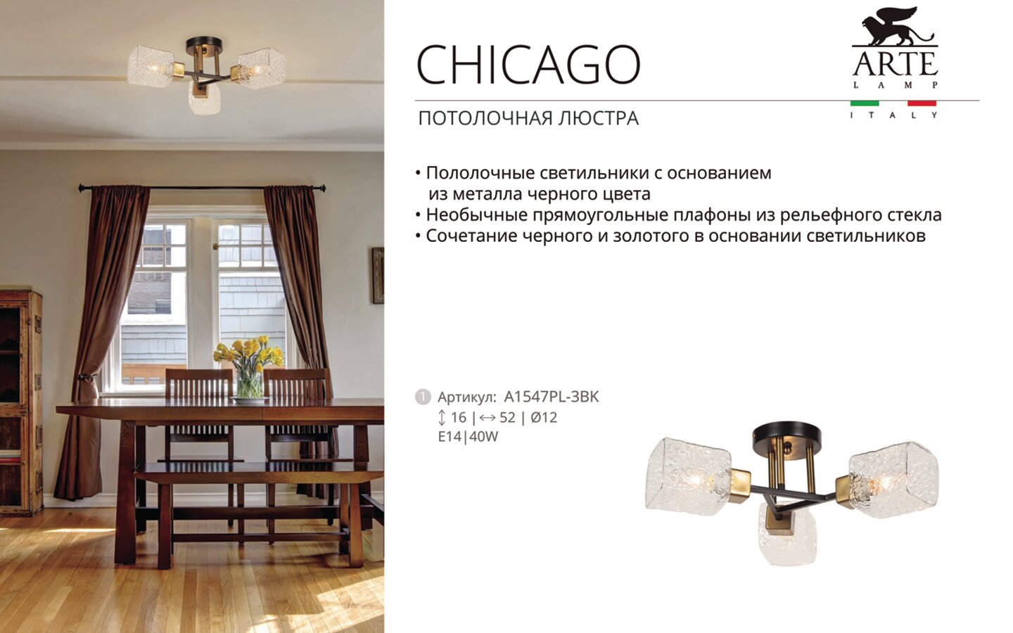 Люстра Arte Lamp CHICAGO A1547PL-3BK