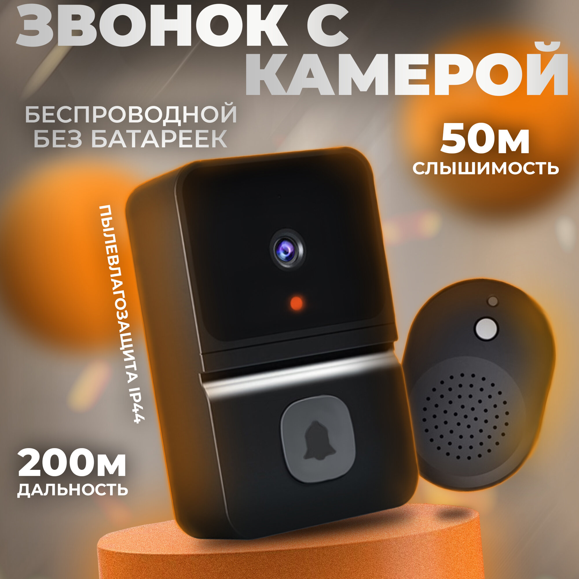 Беспроводной дверной звонок Electroworld, с камерой, радиус действия 200 метров, черный информация: