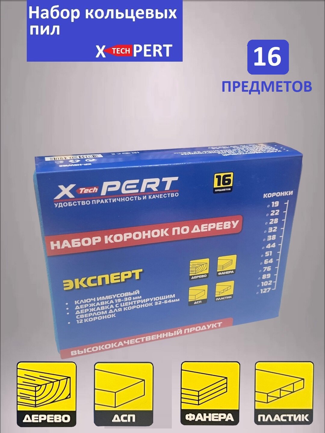 Набор кольцевых пил по дереву X-PERT 16 предметов в кейсе информация: