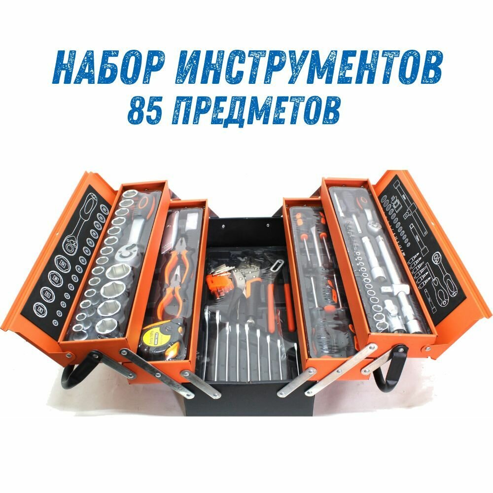 Набор инструментов 85 предметов в металлическом чемодане, Набор ключей и головок, автомобильные инструменты информация: