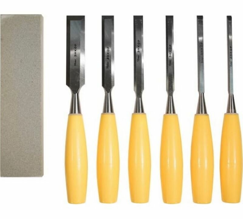 | Состав набора | Стамеска № 6, Стамеска № 12, Стамеска № 20, Стамеска № 26, Брусок для заточки |