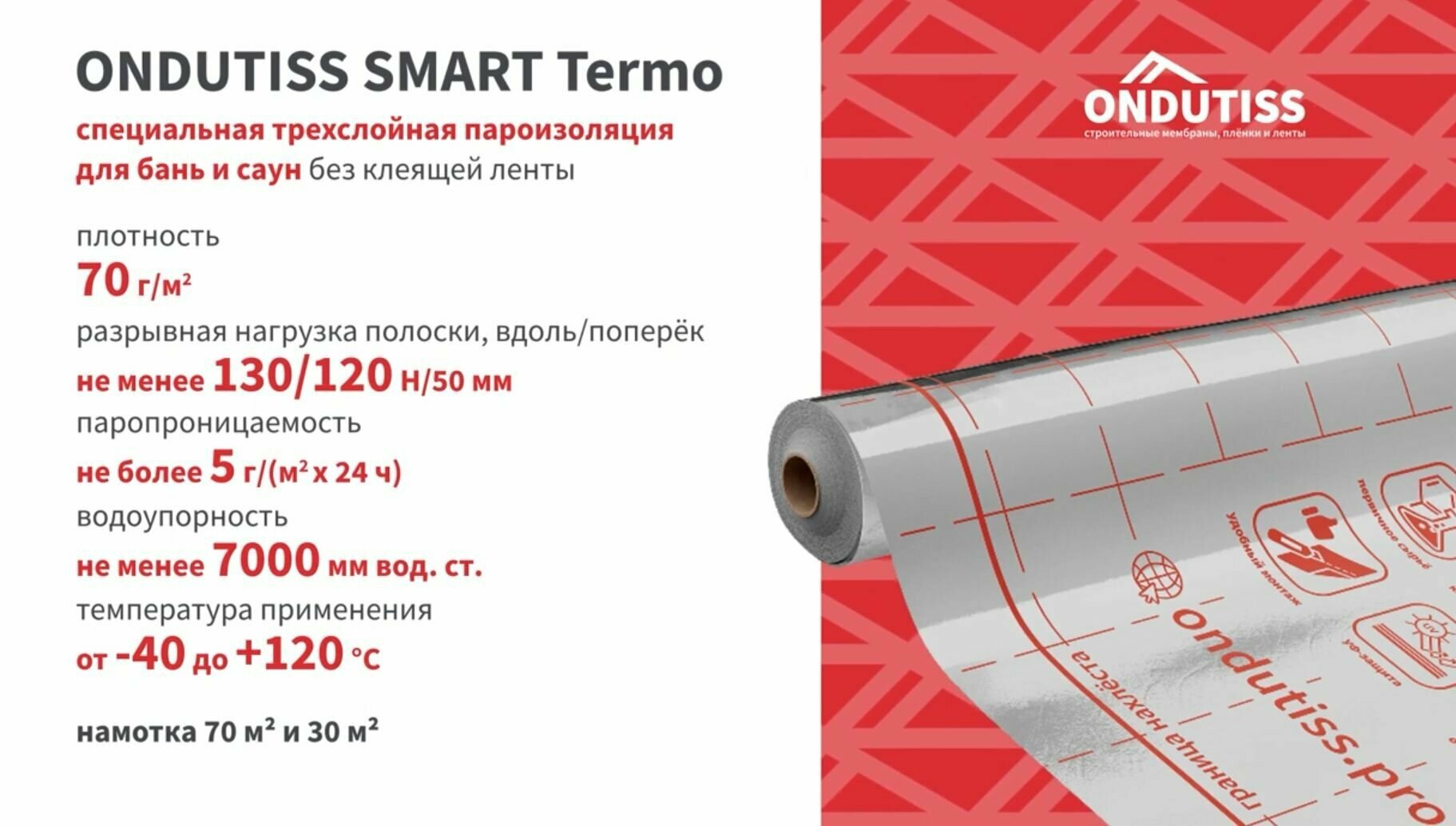 Пароизоляция ONDUTISS SMART Termo 70м2, отражающая пароизоляционная пленка для бань и саун Ондутис Смарт Термо информация: