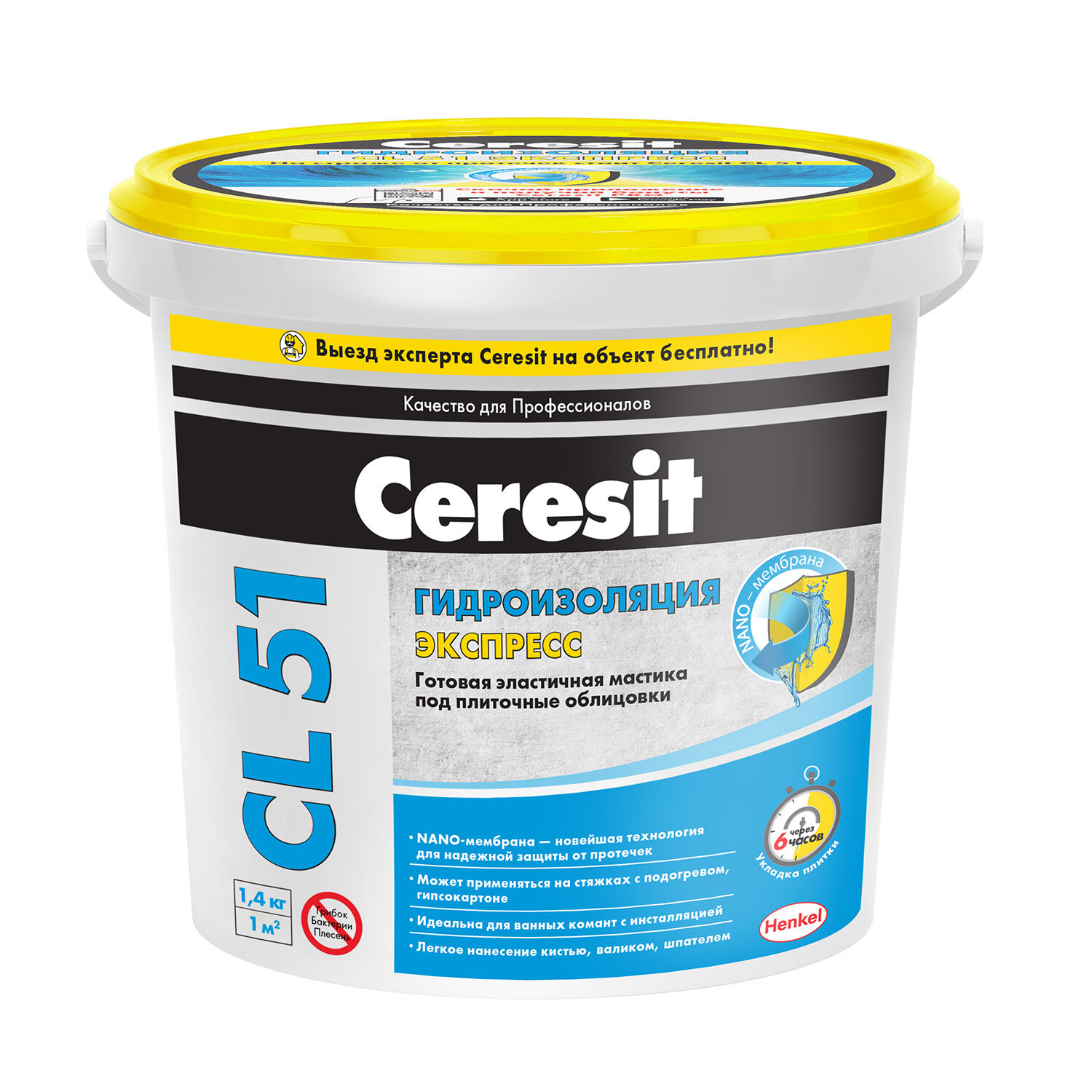Гидроизоляционная мастика Ceresit CL 51 Экспресс Nano мембрана, желтая (5кг)