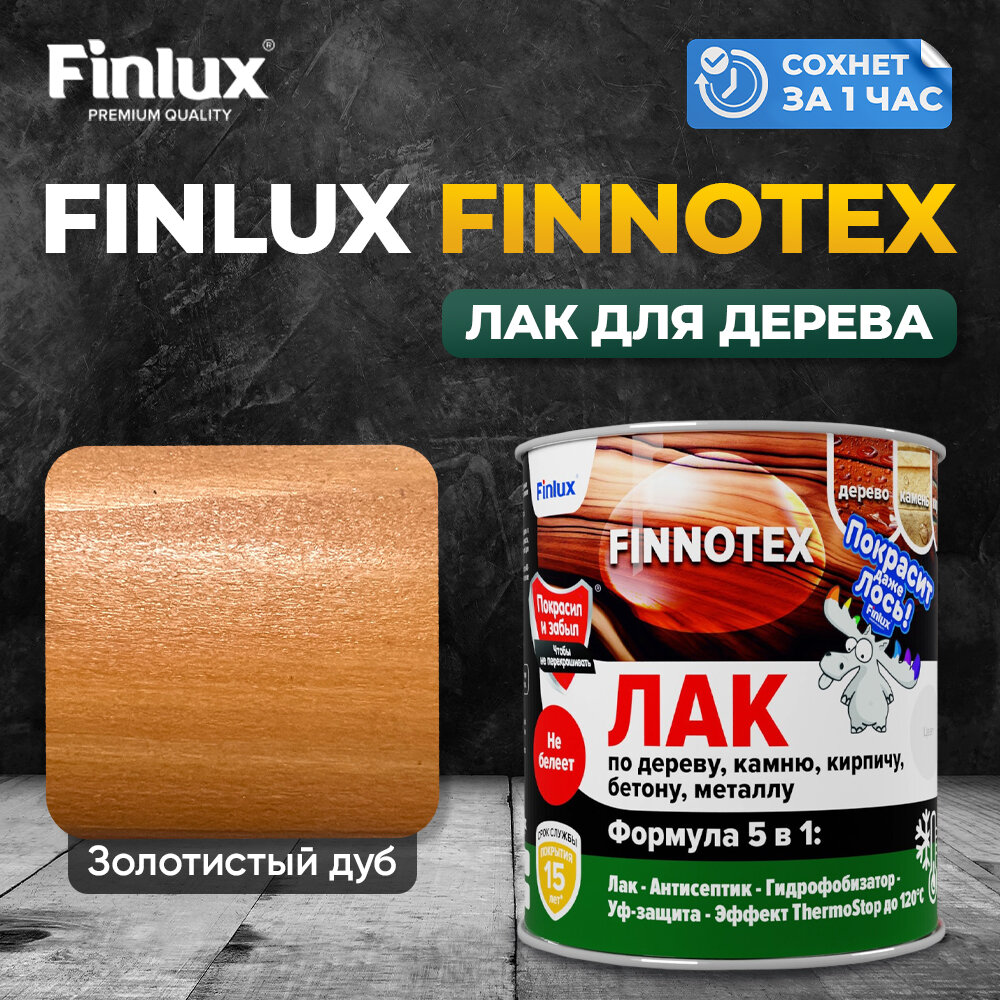 Акриловый лак Finlux F-973 FINNOTEX, для дерева декоративный, полуглянцевый, цвет золотистый дуб, 0.8 кг 771 ₽