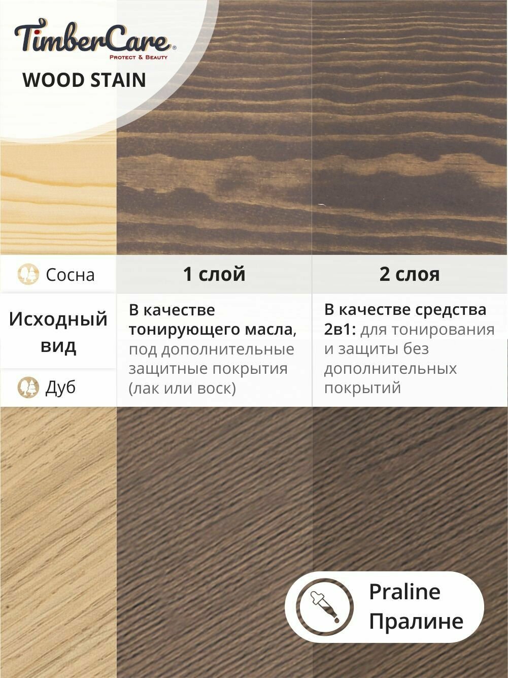Масло для дерева и мебели TimberCare Wood Stain, быстросохнущие масла для дерева для внутренних работ, Пралине/ Praline, 0.2 л информация: